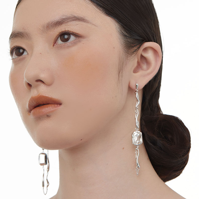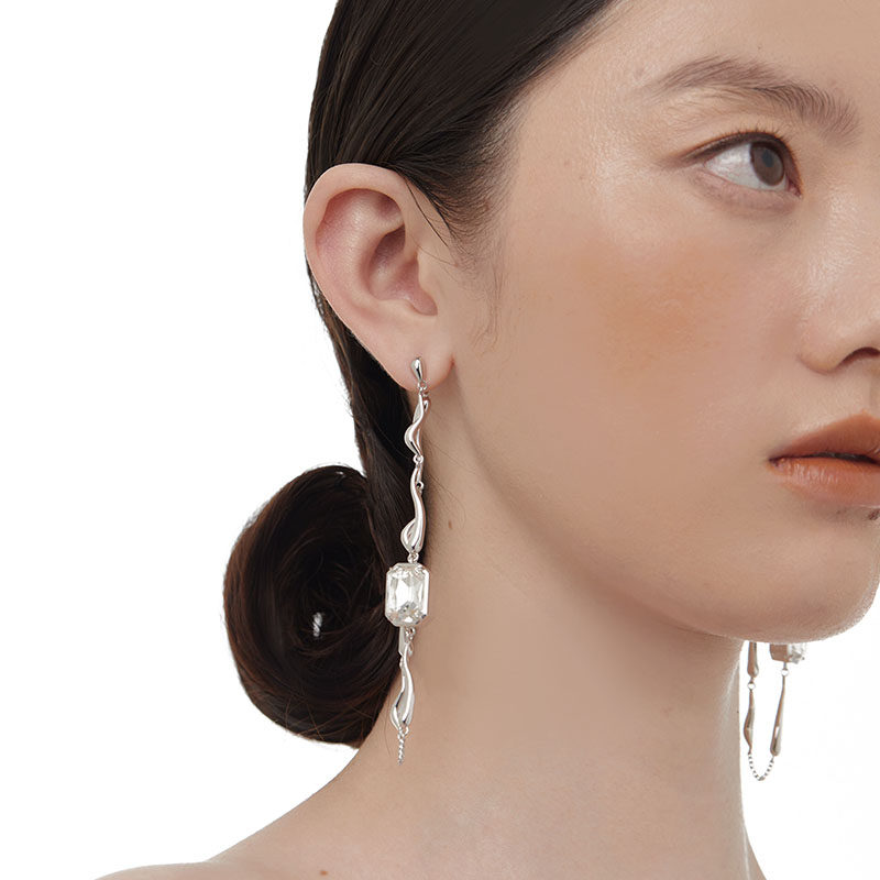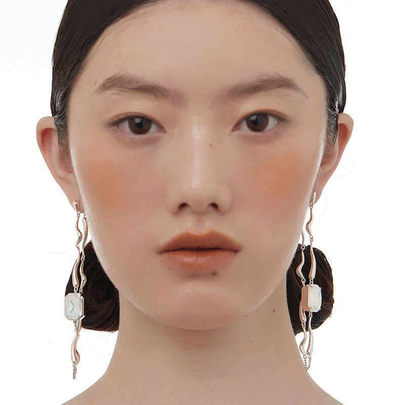 MiowRhyme recipes Shell Series Long Prints Ear Pendant Ear chains Flow line Wavy Protein Stone Crystal Advanced Sensation
