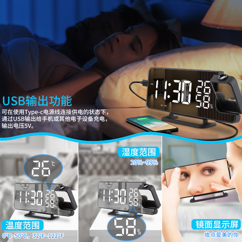 Creative LED large screen temperature and humidity electronic clock multi-functional projection mirror alarm clock bedroom automatic photosensitive bedside clock