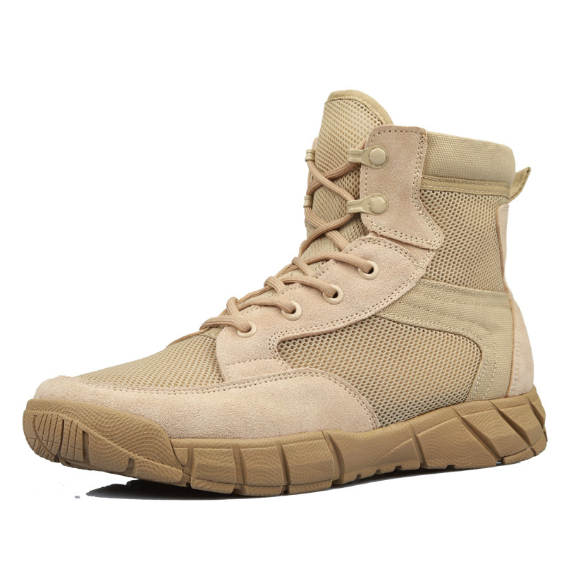 Summer Desert Boots Male Mesh Ultra Light Breathable Tooling Shoes Middle Cylinder Outdoor Wear climbing Mountaineering Laced Ashcolor Martin Boots