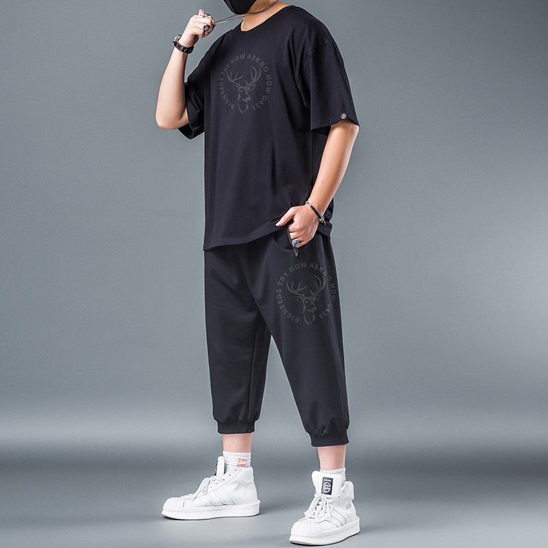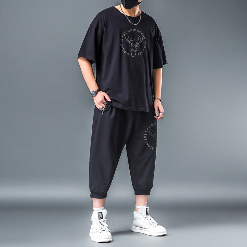 Short sleeve T-shirt suit men's seven-pants summer large size men's clothing loose plus fattening to fatter casual sportswear