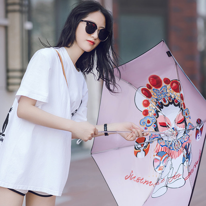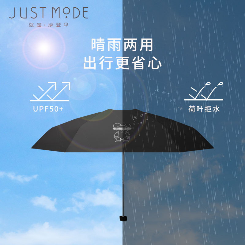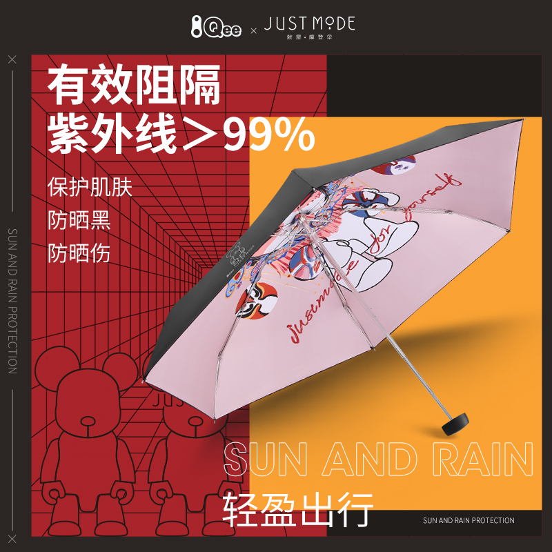 JUSTMODE beach umbrella QEE Chaubear joint five-fold black rubber sunscreen anti-UV clear umbrella small