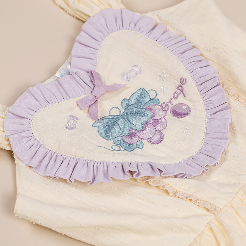 (GRAPES CHEESE JSK) WITHPUJI ORIGINAL DESIGN GRAPE EMBROIDERED FLORAL DRESS LOLITA SUMMER MILK OIL COLOR