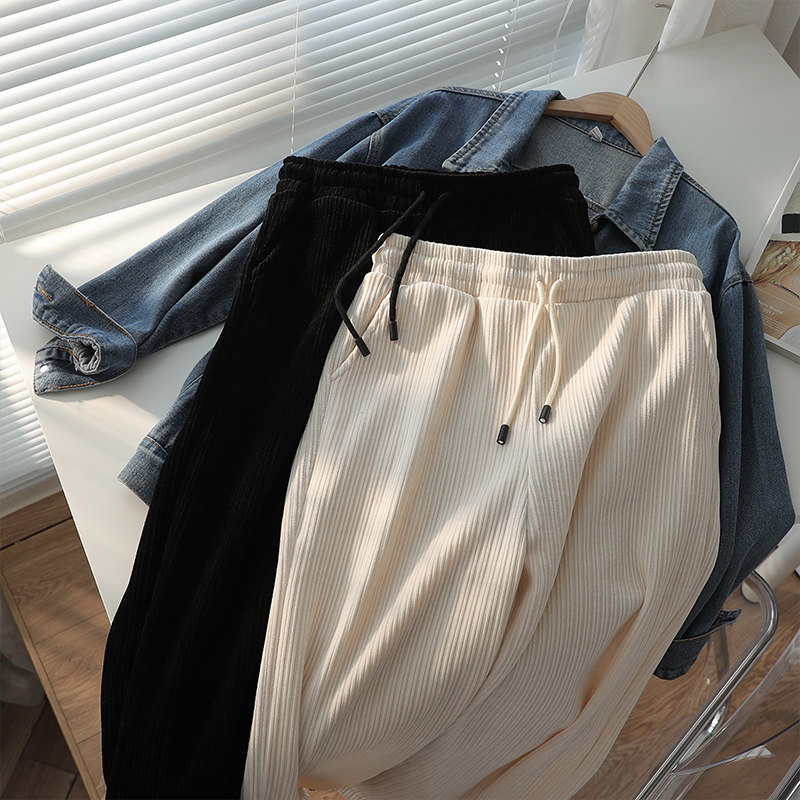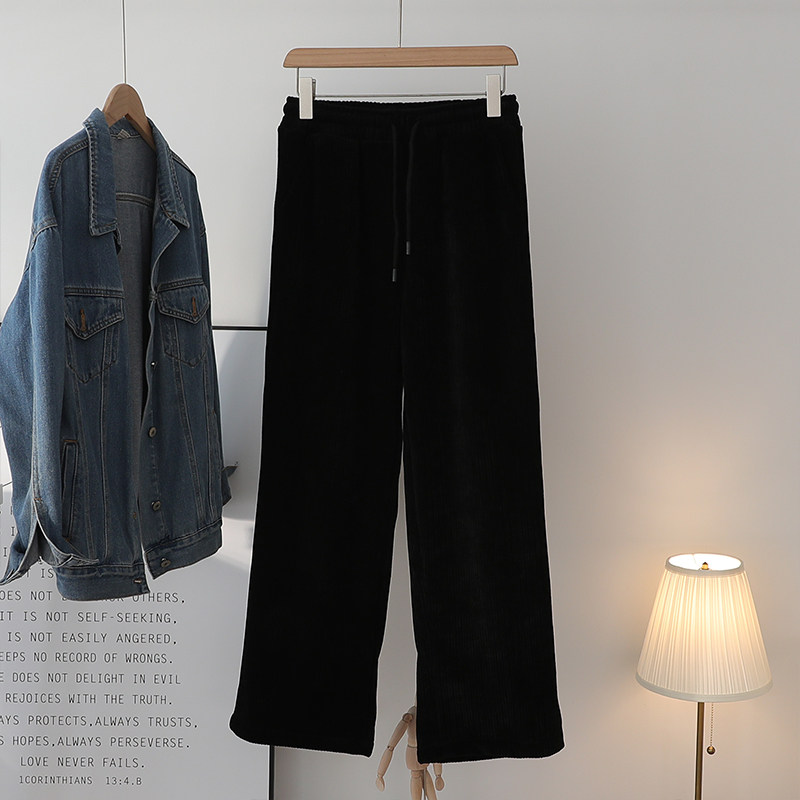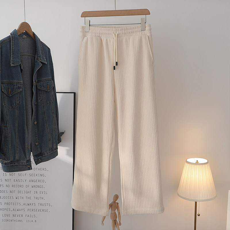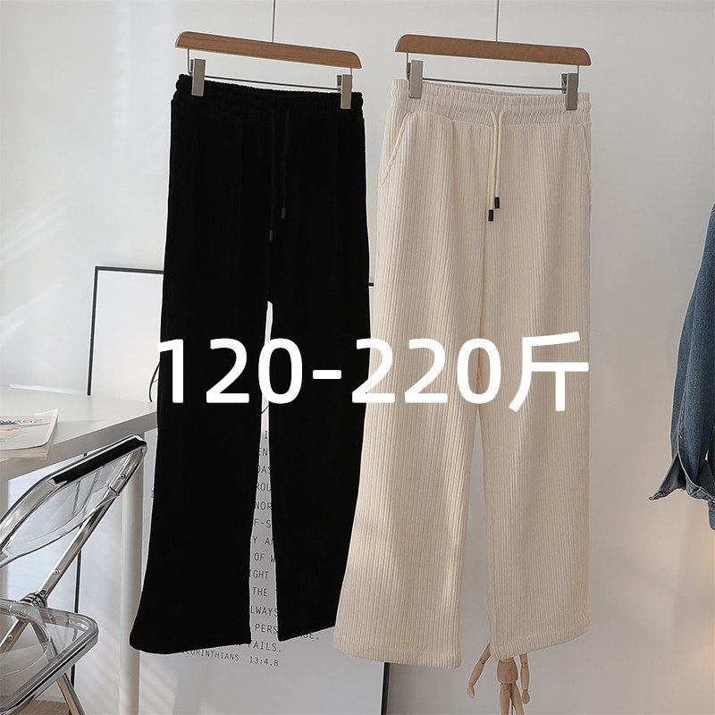 Spring Lady Chenille Broadlegged Pants Big Size Fat Sister Casual High Waist Loose With Slim Light Core Suede Fat Mm Pants