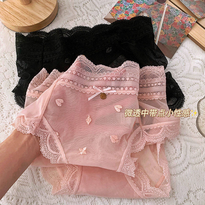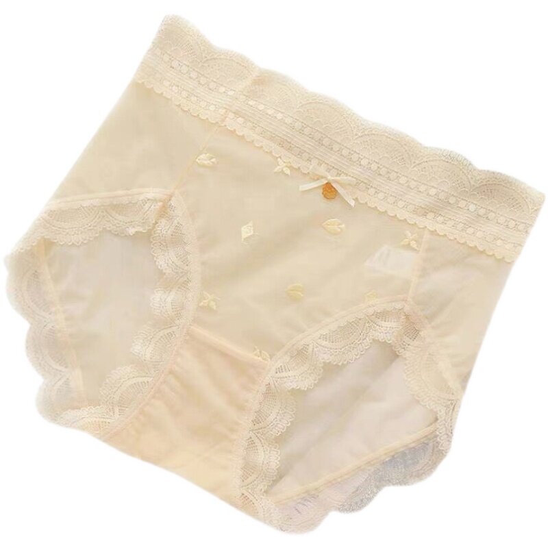 Palace style high waist panties soft lace embroidered cotton crotch breathable mesh large size girl sexy briefs