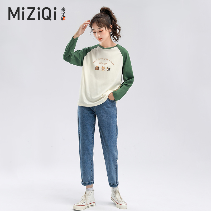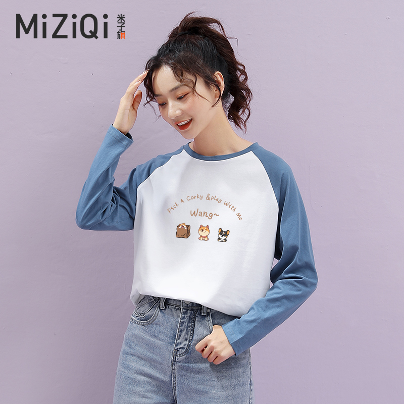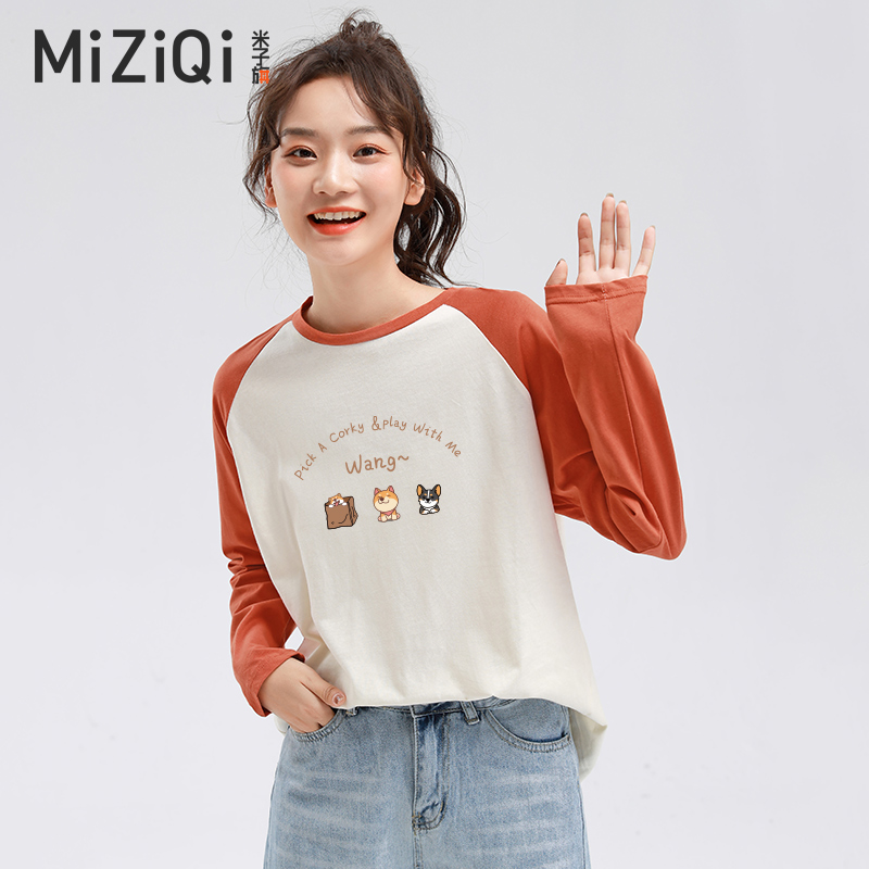 Miziqi round neck long-sleeved T-shirt women's spring and autumn 2022 new casual loose pullover cotton bottoming shirt trend