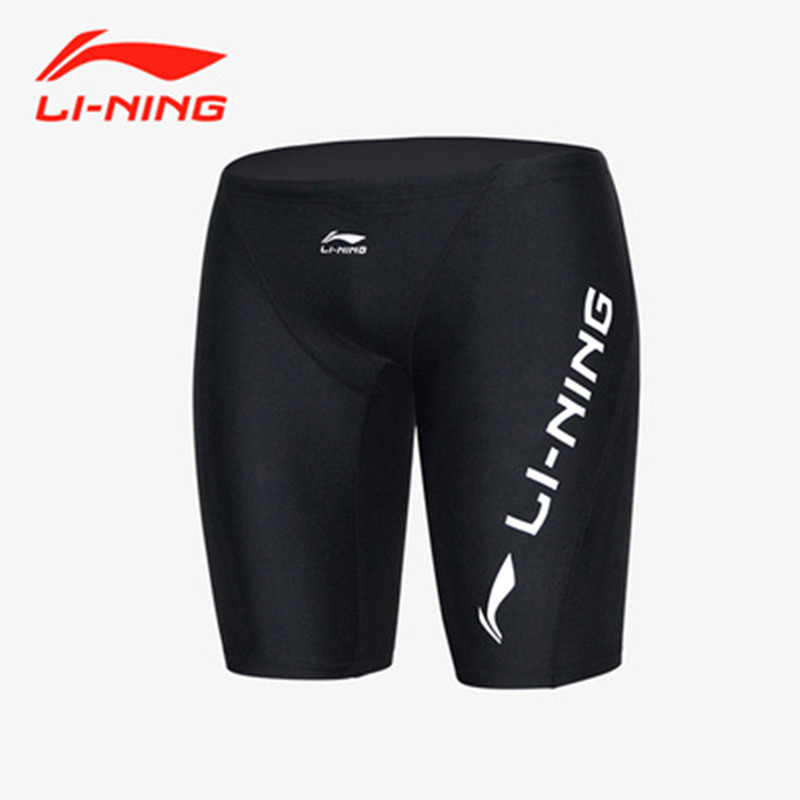 Li Ning men's professional training five-point swimming trunks fashion comfortable quick-drying anti-chlorine hot spring beach black swimming trunks