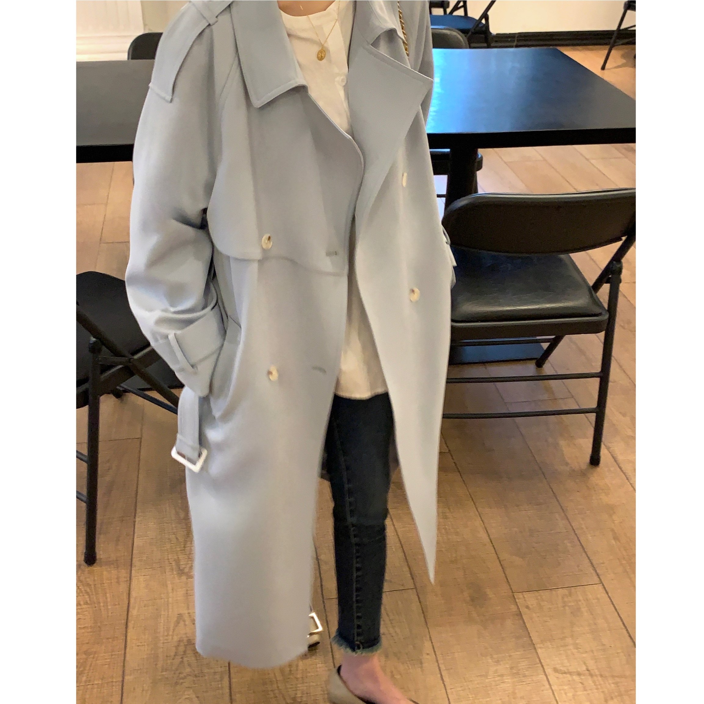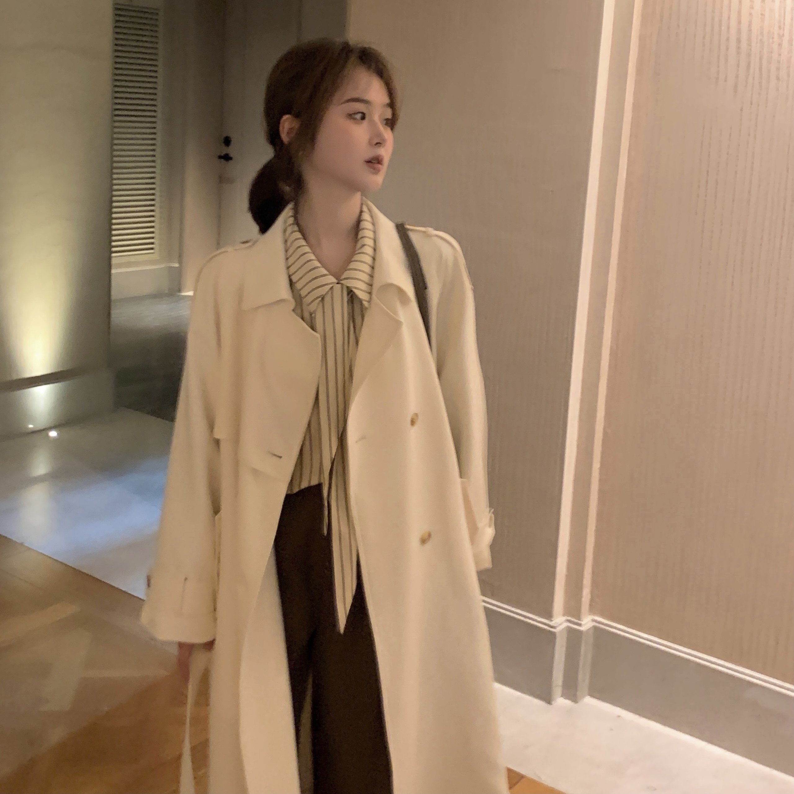 High Ji Texture 2022 Early Spring 150cm Little Subtemperament Long Edition Milky white Wind Coat High Coat