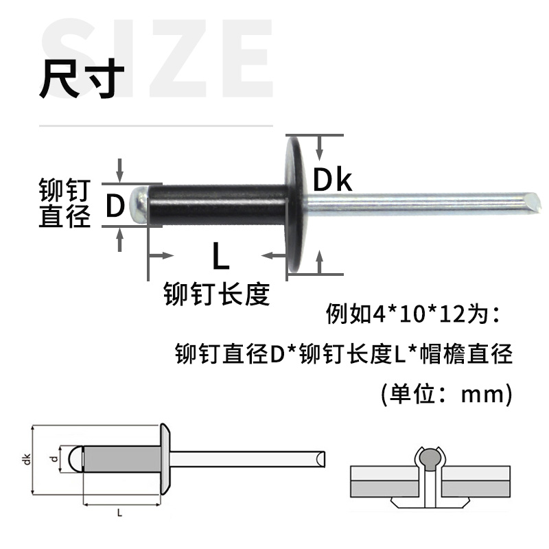 Big brim aluminum alloy Astor combination rivet paint black gray fiber cement board big flat head pull rivet