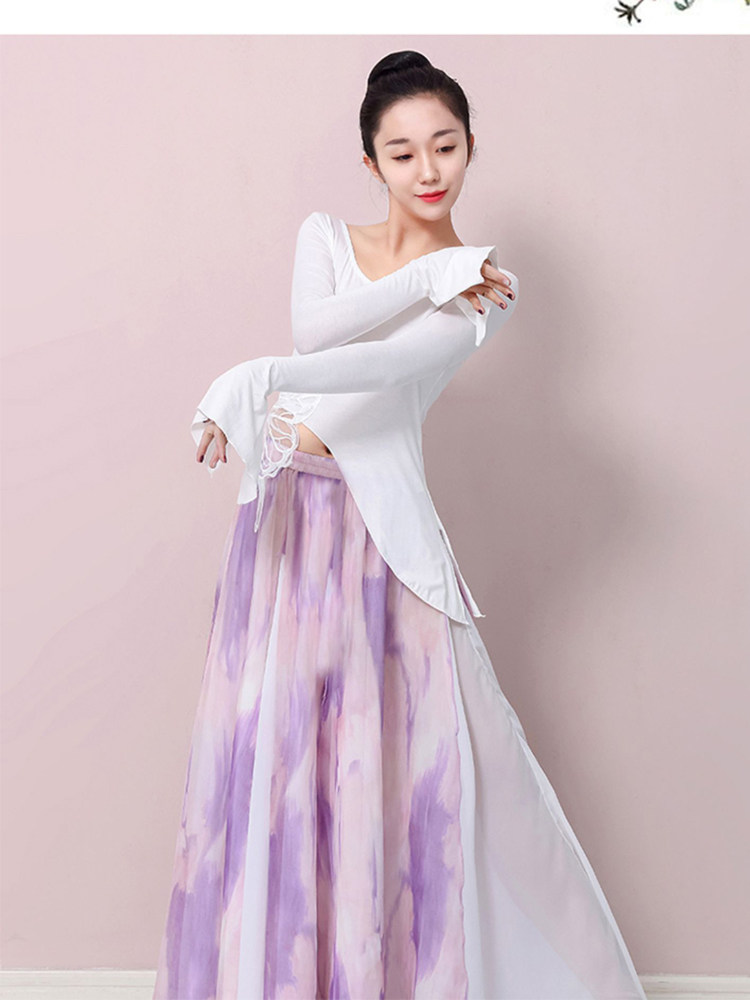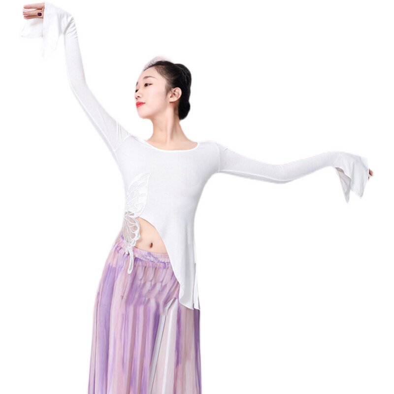 2022 New Classical Dance Butterfly White Top Lace Butterfly Fixed Horn Sleeve Female in Spring 2022