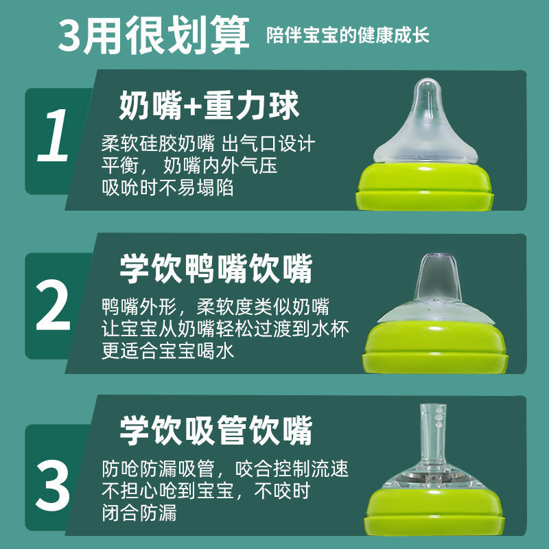(Official store) Beiqin baby wide-bore pacifier newborn universal duckbill straw big baby mouth