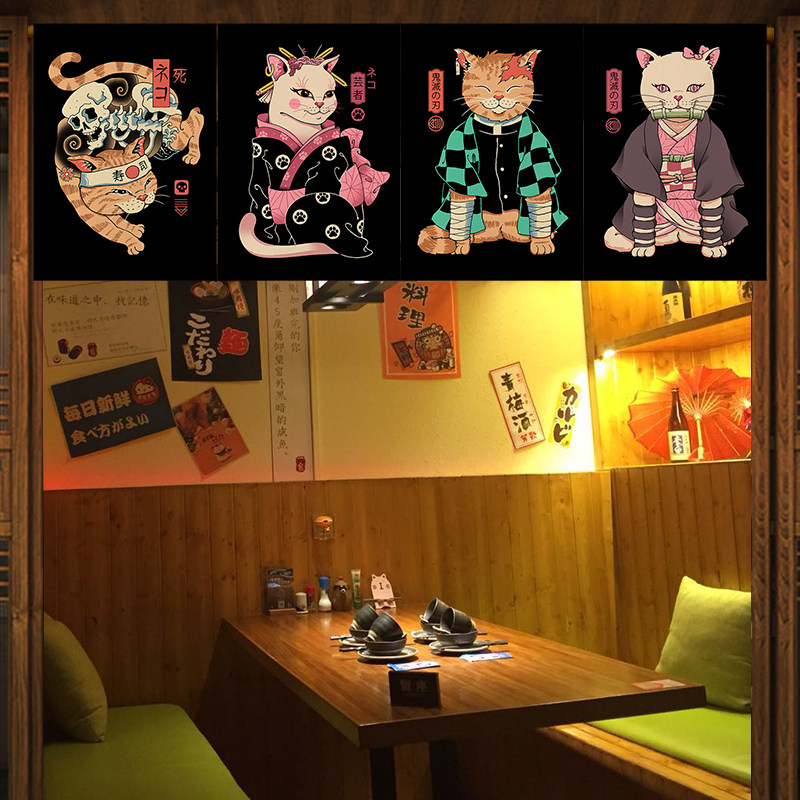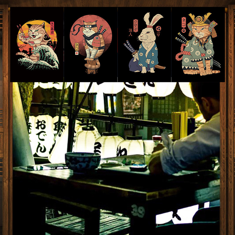 Japanese-style ukiyo-e short door curtain door curtain commercial partition window kitchen anti-fume shielding curtain home porch curtain custom