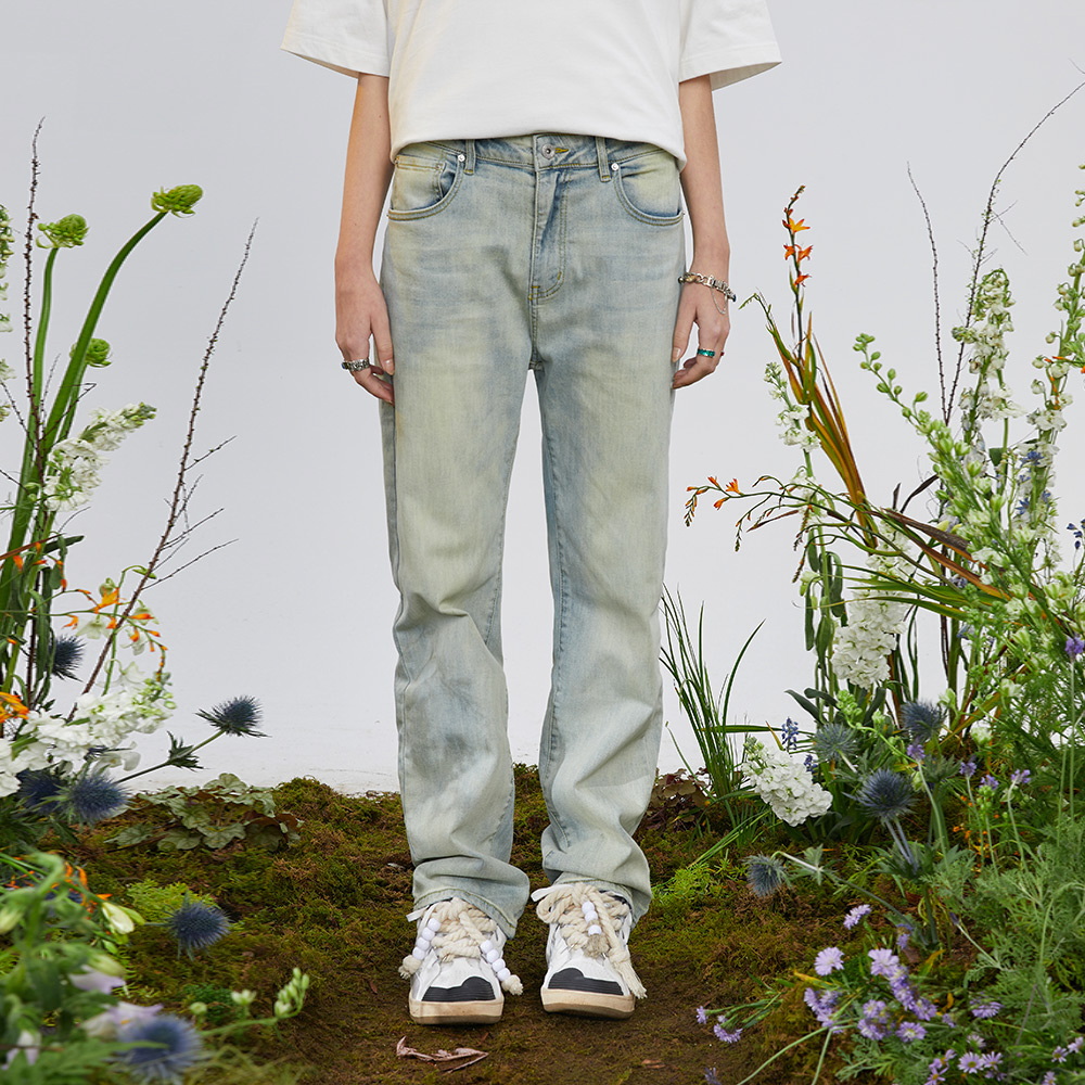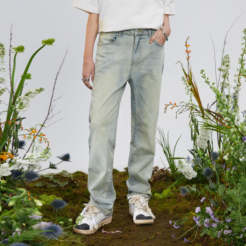 DONSMOKE yellow clay jeans elastic loose straight cylinder for old washed denim long pants spring and summer for men and women