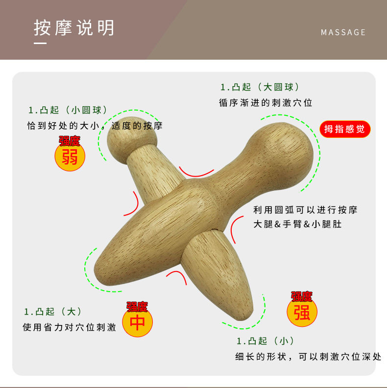 Cross plane type massager Wooden foot massage cone press wood therapy acupoint meridian acupoint massage stick