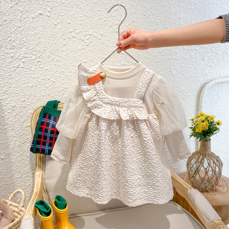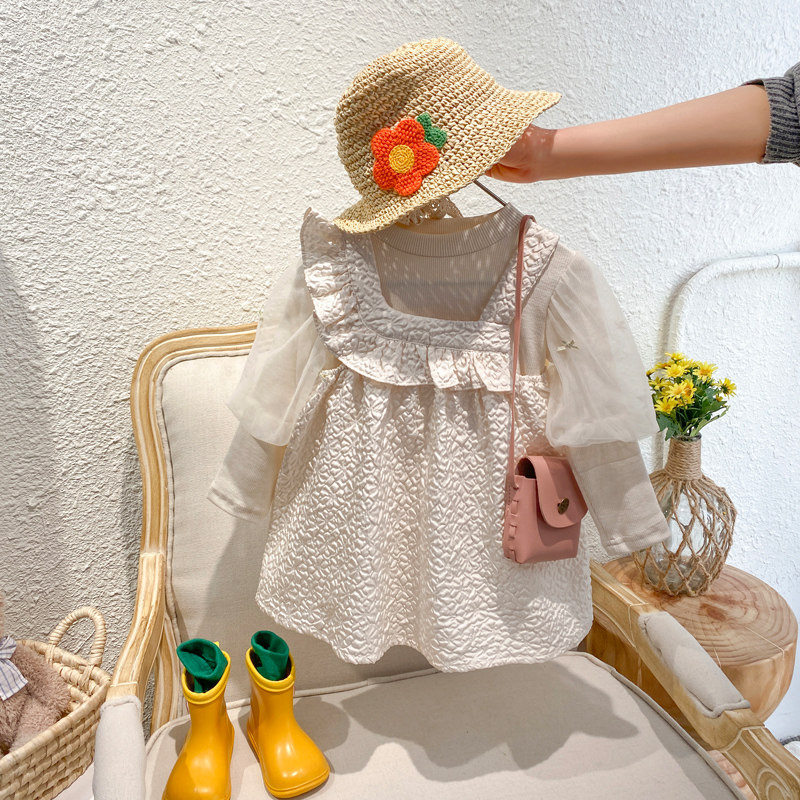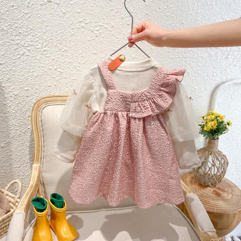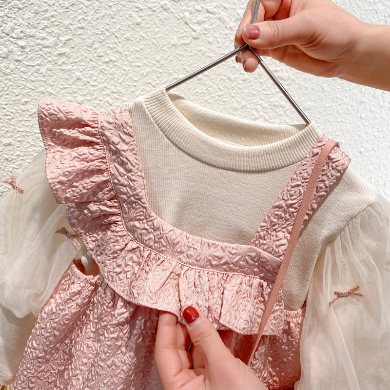 Girl Spring Clothing Suit 2022 New Small Children Trendy Foreign Pie Net Red Clothes Woman Baby Spring Autumn Two Sets Dress