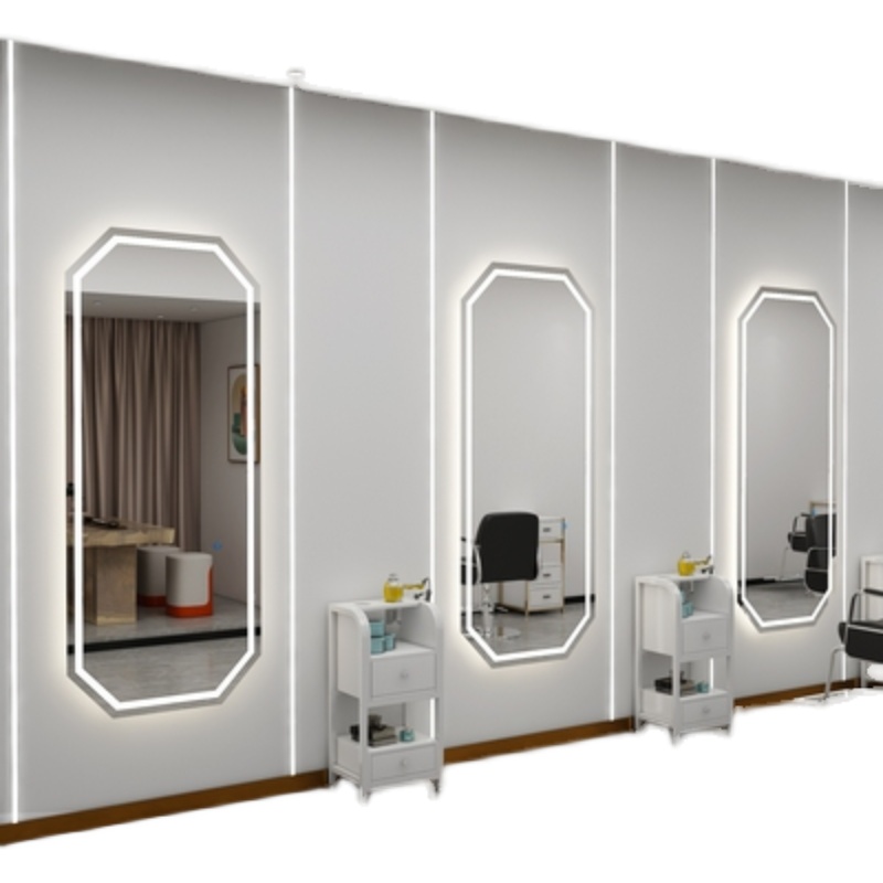 Hairshop mirror shop mirror hairdresser mirror hairdresser special network red belt lamp wall hanging wall stamping glass