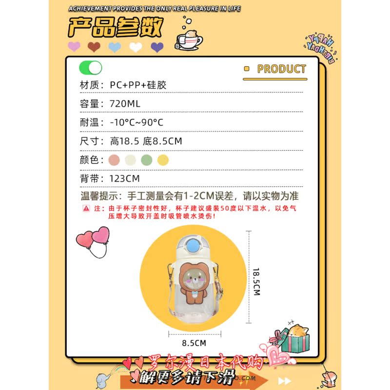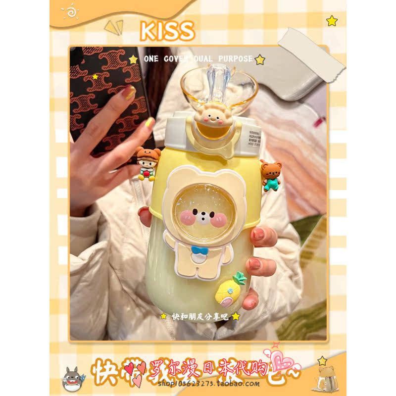 SH cute children's water cup large-capacity high-temperature plastic cup girl portable with straw summer students