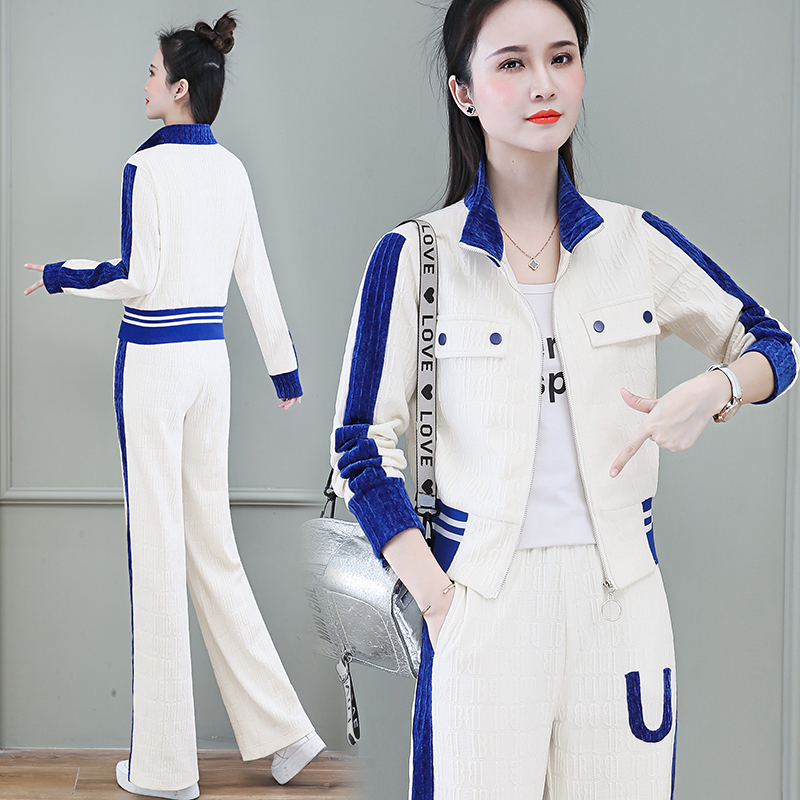 Fried Street Broadlegged Pants Casual Sports Suit Women 2022 Spring Autumn Season New Temperament Standout Cardiovert cotton T Two sets