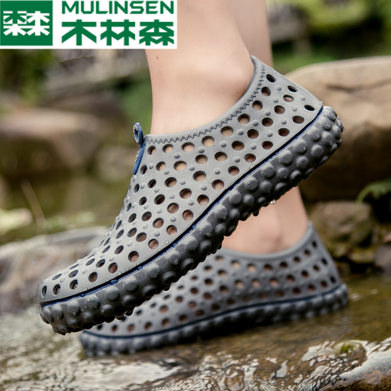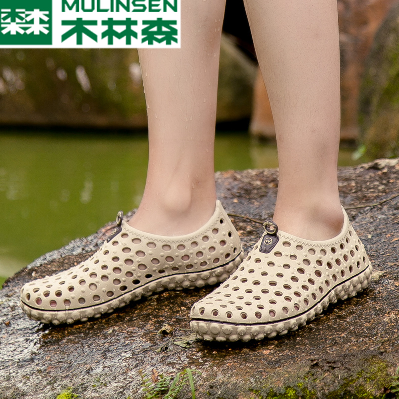 Wood Linson Beach Shoes Men's Leisure Sandals Driving Tide Drag Summer New Waterproof Non-slip Baotou Dongle Shoes