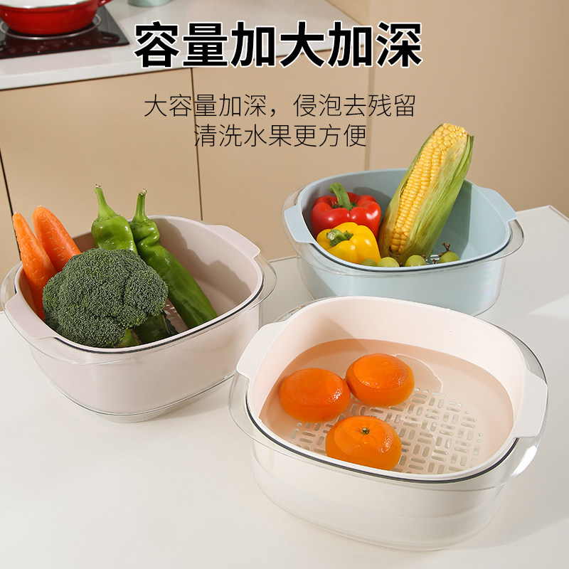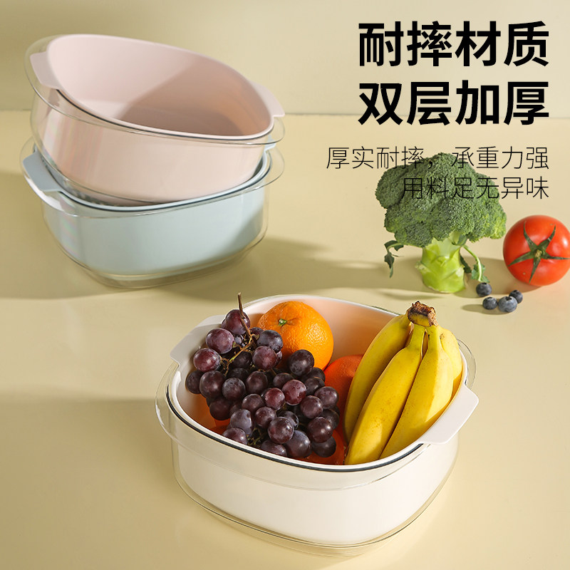 Net Reddish Wash Basin Leash Basket Kitchen Double Layer Thickened Wash Vegetable Basket Wash Fruit Theiner Naughty dish Fruit Dish Resistant