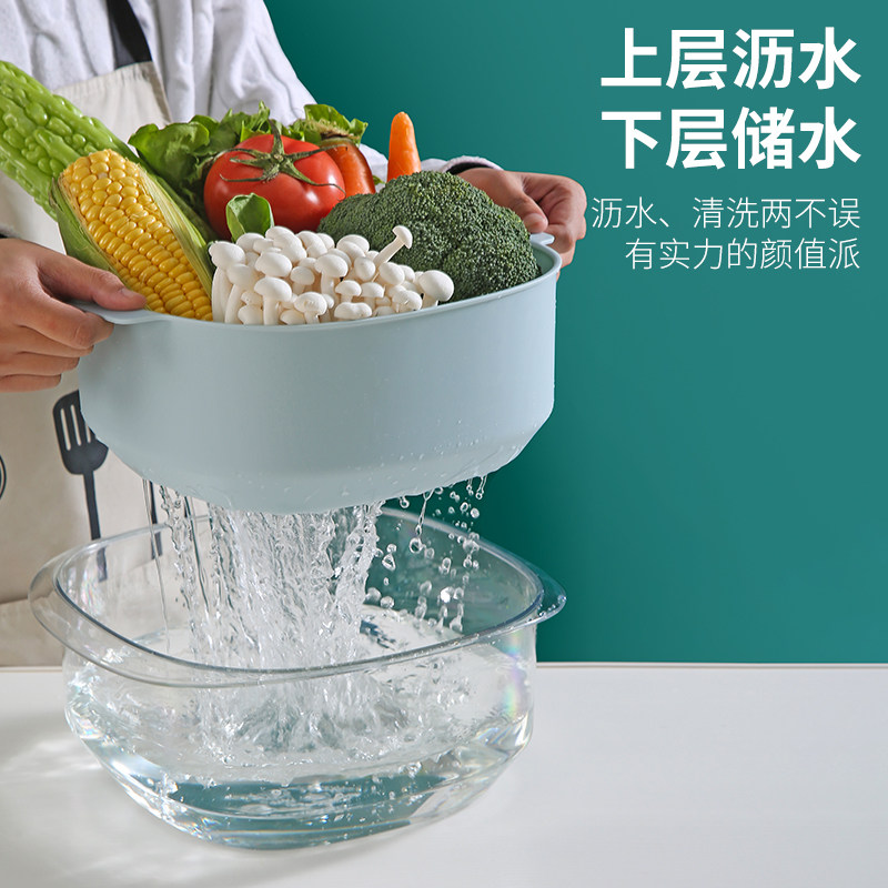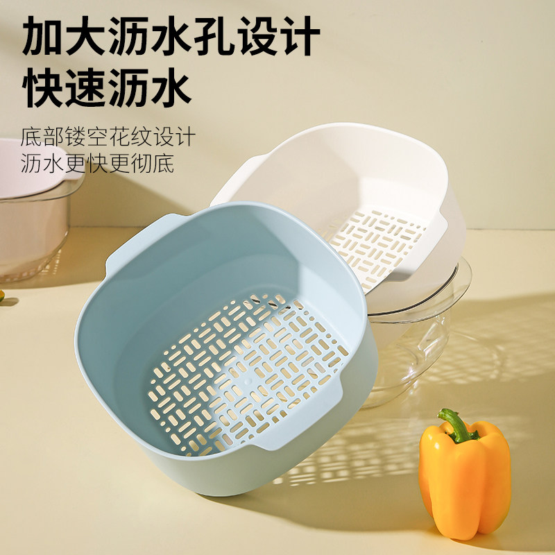 Transparent white-double wash vegetable basket transparent pink-double wash vegetable basket transparent blue-double-layer washing basin