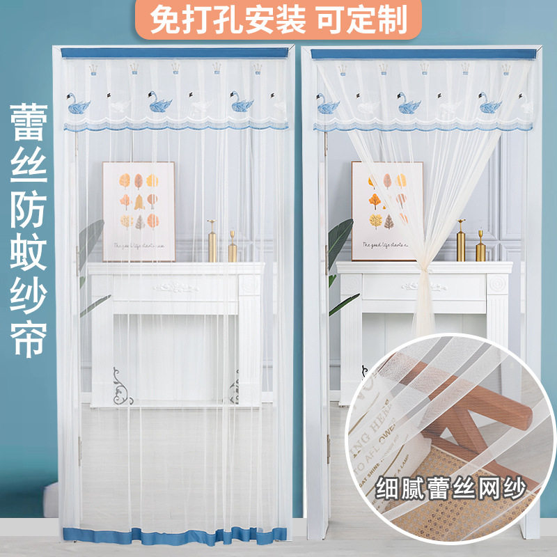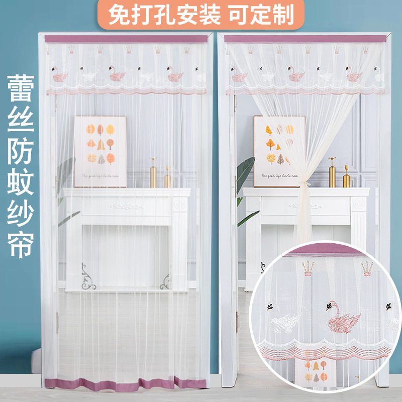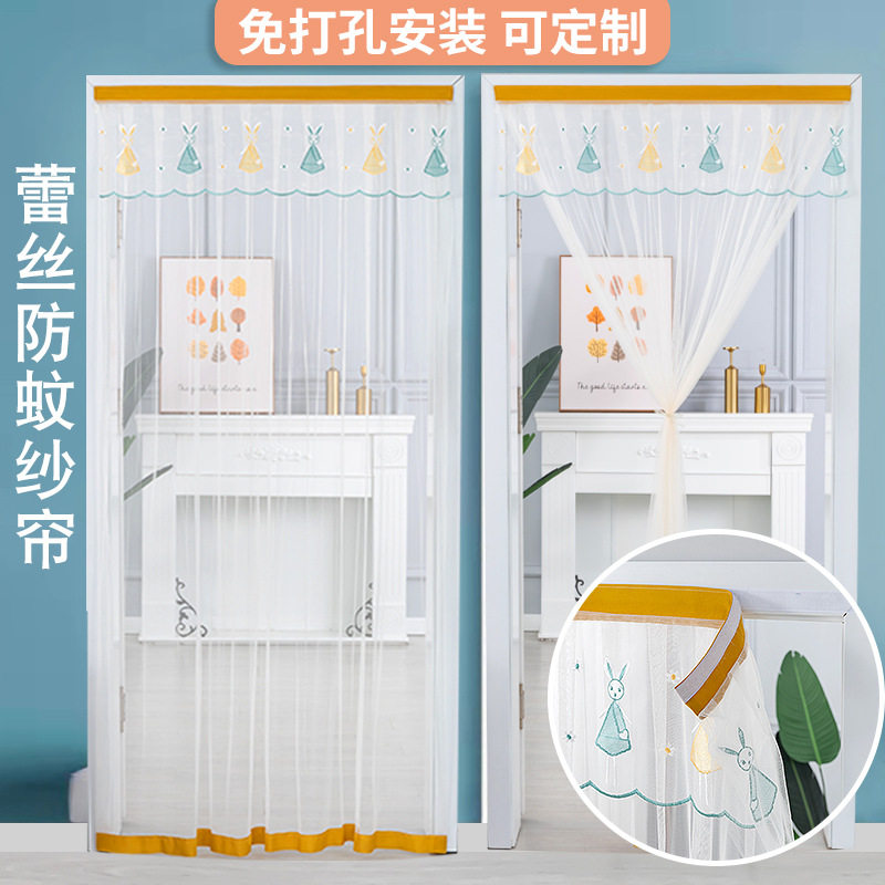 Summer anti-mosquito door curtain single yarn lace embroidery free punching Velcro self-adhesive partition curtain kitchen bedroom household