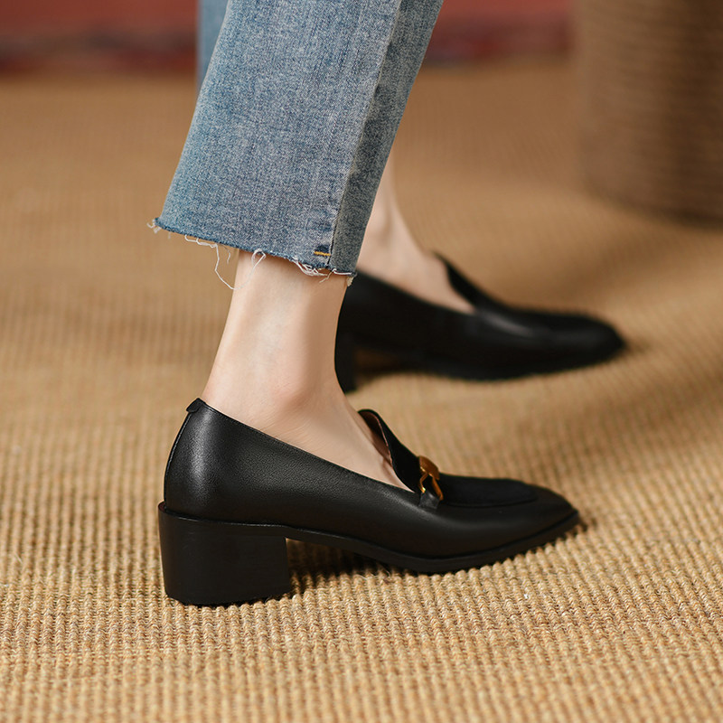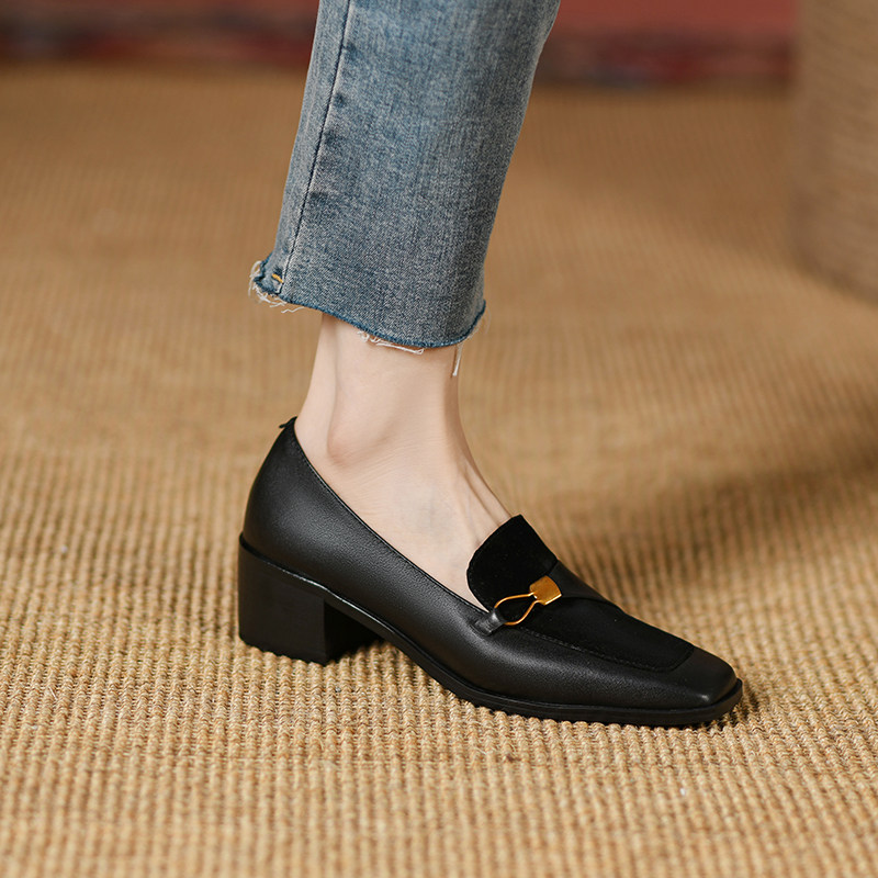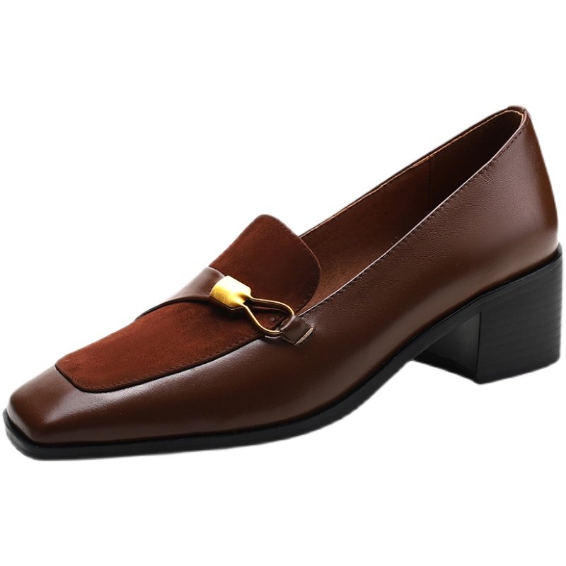ann it shows the perfect you~ square toe loafers women's new all-match small leather shoes chunky heel shoes 4 5cm