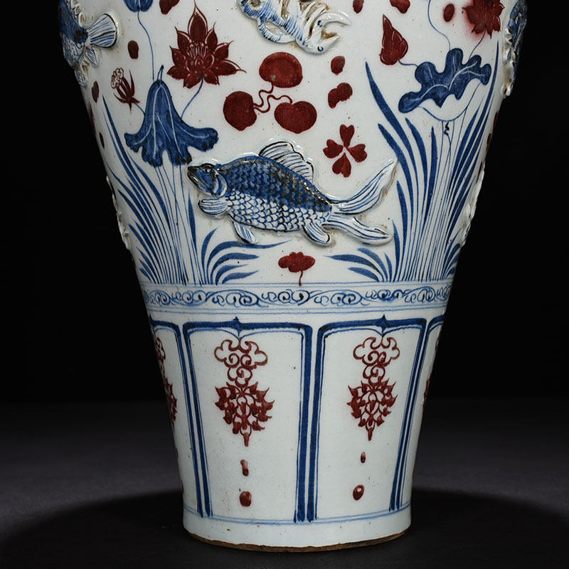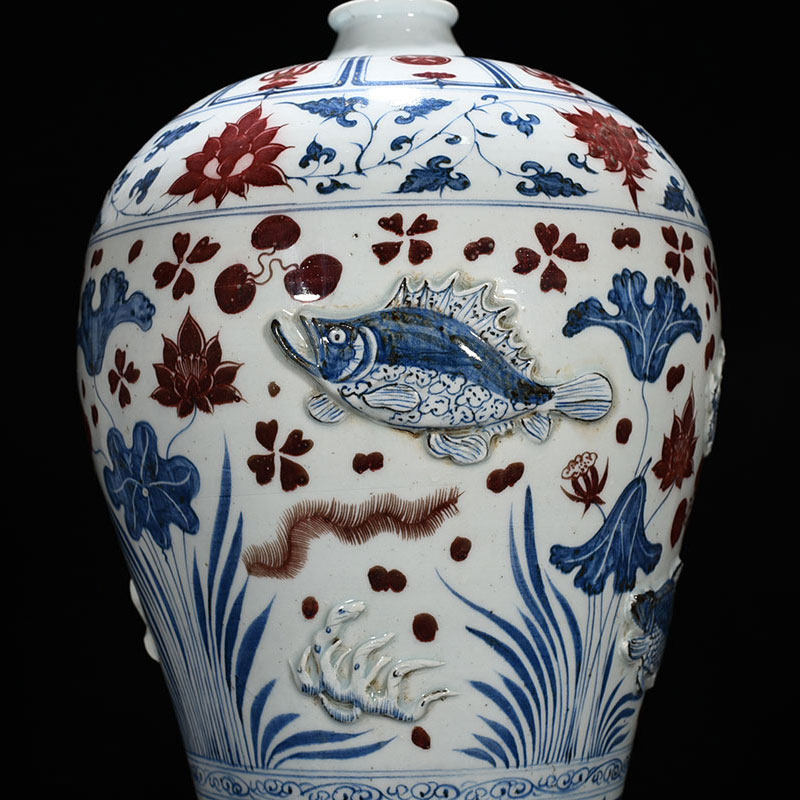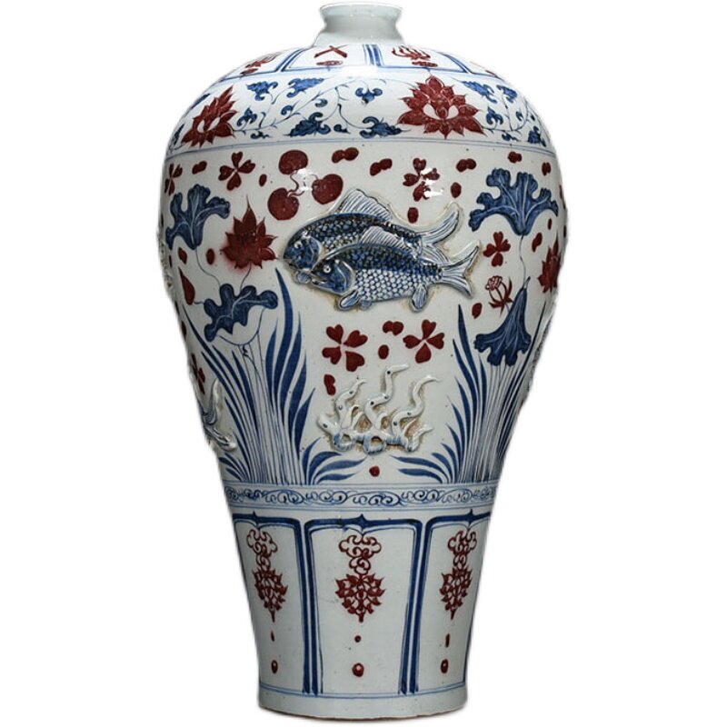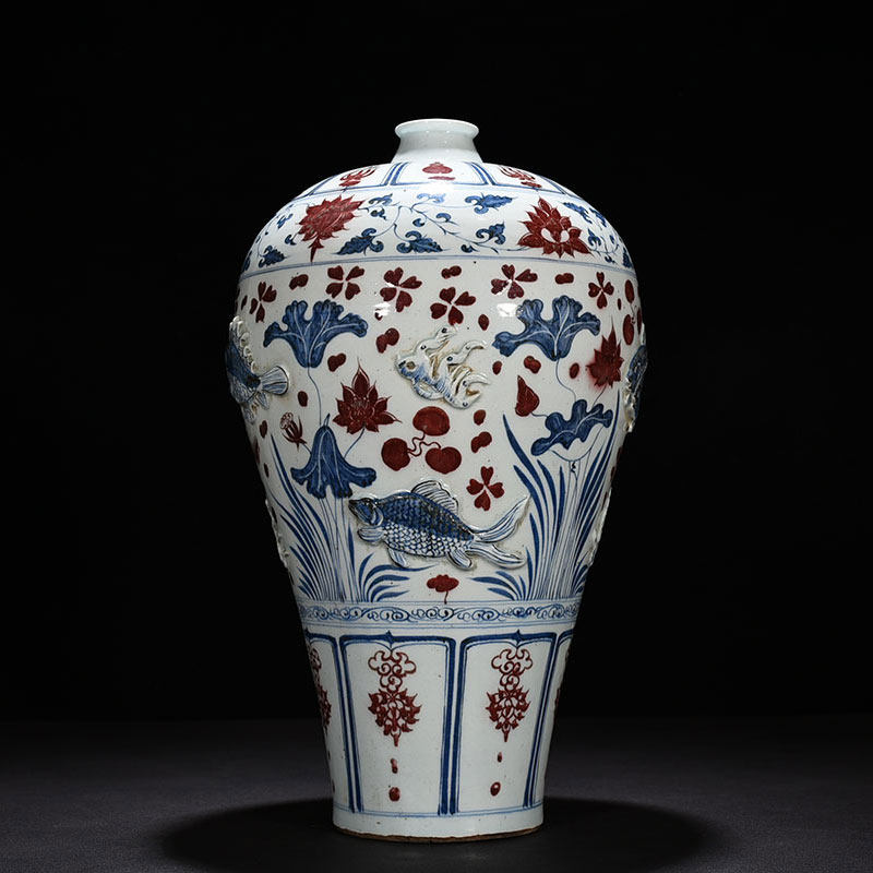 Yuanqing flower glazed with red plastic-coated fish algae tattooy plum bottle