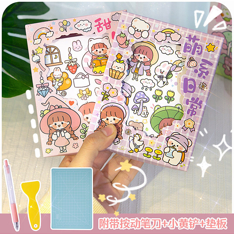 Handbill stickers 100 sheets without repeat engraving of a knife base plate gift box set of cute cane Supplies large All children Girls decorate small patterns High face value Girls net red handbooks Material material Package
