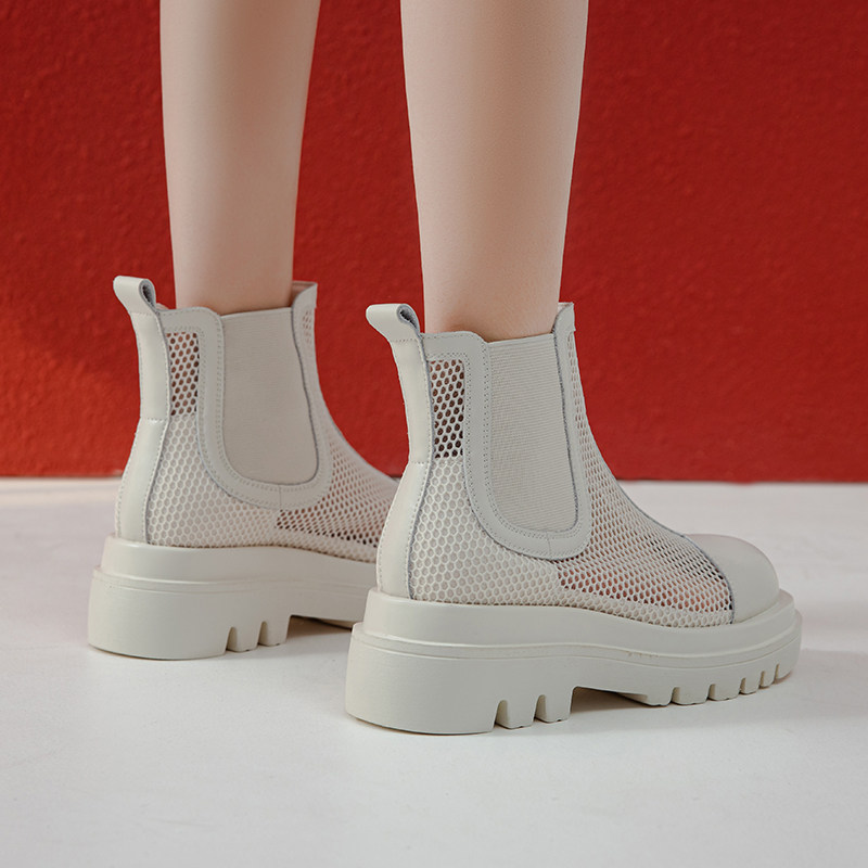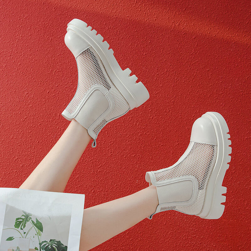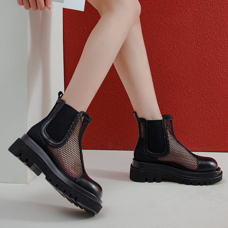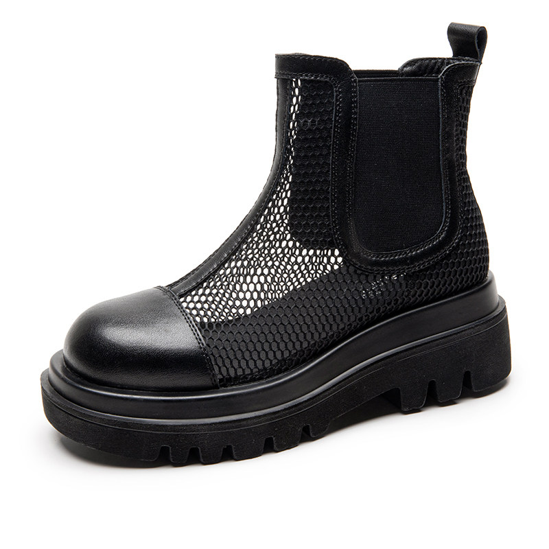 Black Martin Boots 2022 Spring Thin Boots Girl Net Boots Hollowed-out Boots Genuine Leather Mesh Yarn Cool Boots Lean Thin Single Boots