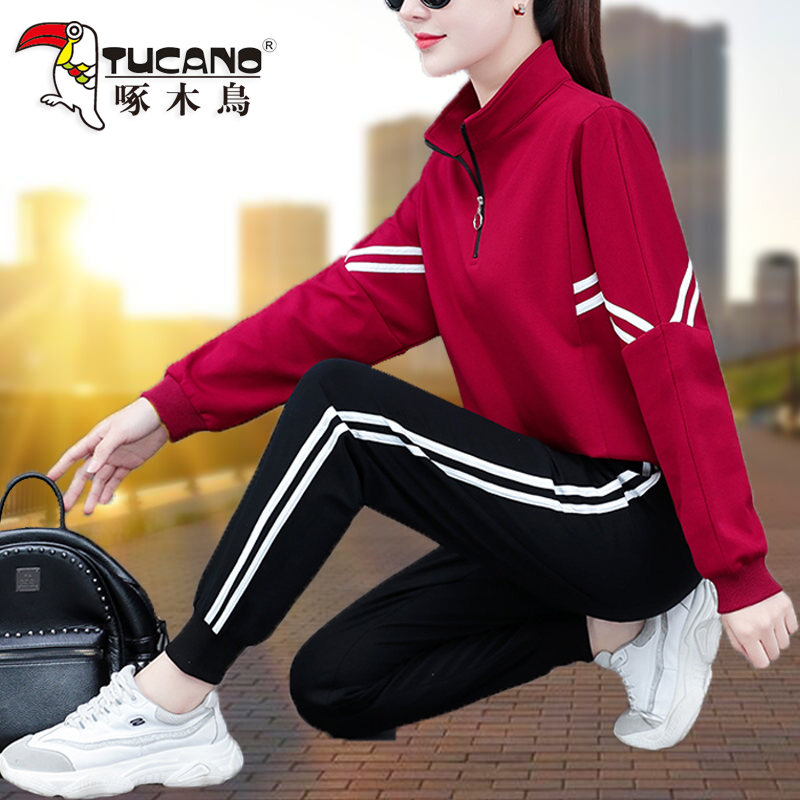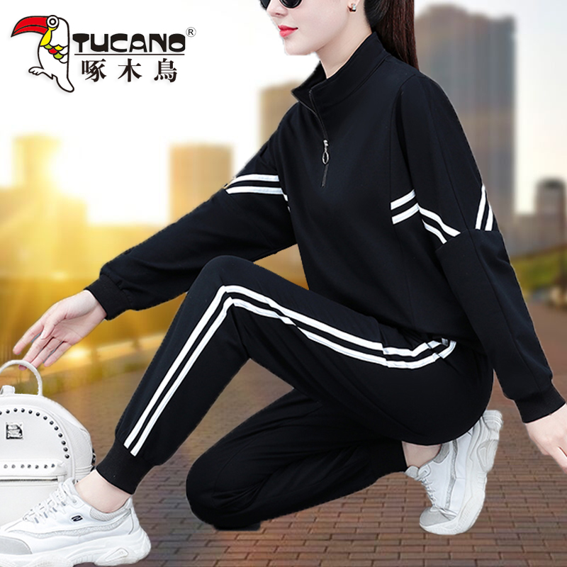 Woodpecker Sports Suit Women 2022 New Spring and Autumn Long-sleeved Large Size Fashion Casual Western Style Slim Two-piece Set