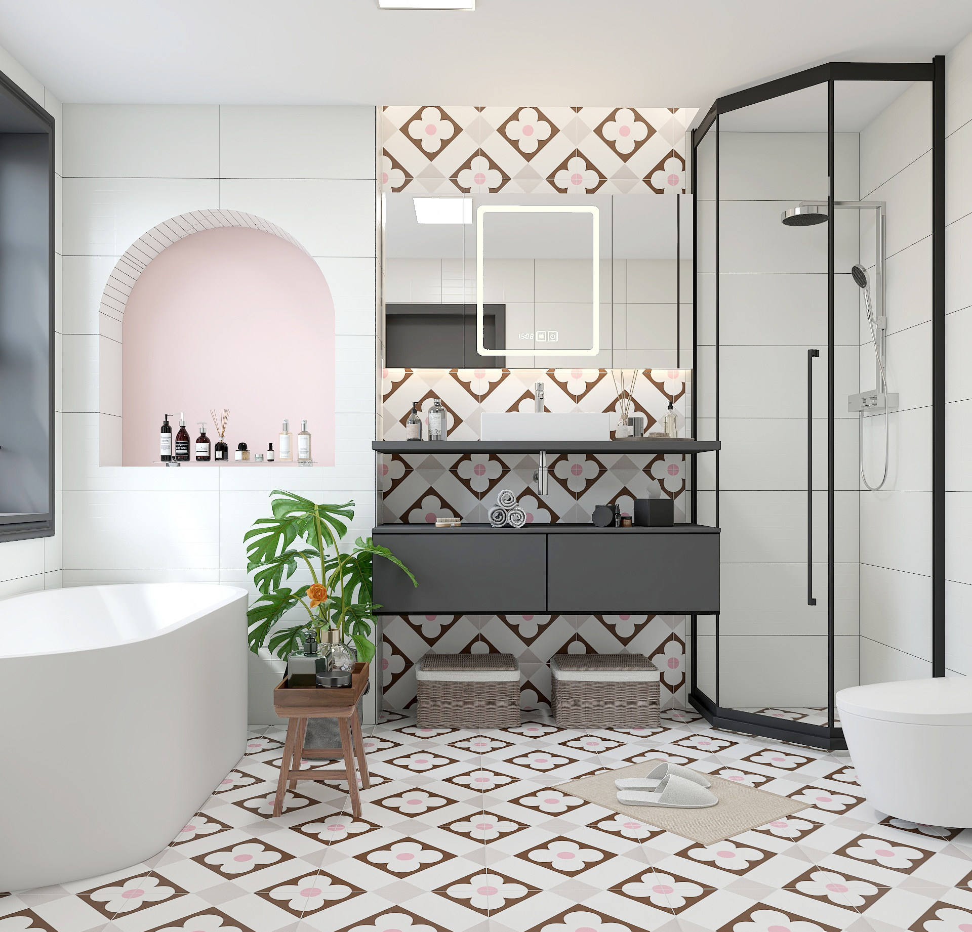 ins simple powder room floor tiles balcony kitchen non-slip indoor tiles