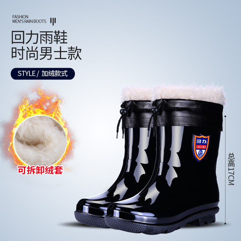 Pull back rain boots men's short tube waterproof shoes middle tube non-slip wear-resistant rain boots plus velvet plus cotton overshoes kitchen work shoes