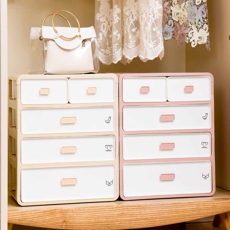 Smoke green 4 layers (underpants, socks, bra, 2 small draws) top storage, cherry blossom powder 4 layers (underpants, socks, bra, 2 small draws), top storage, milk apricot yellow 4 layers (underpants, socks)
