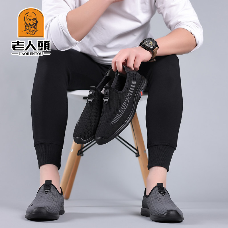 Old man's head summer men's 2022 new casual flying woven dad shoes youth comfortable round head lace-up sneakers trend