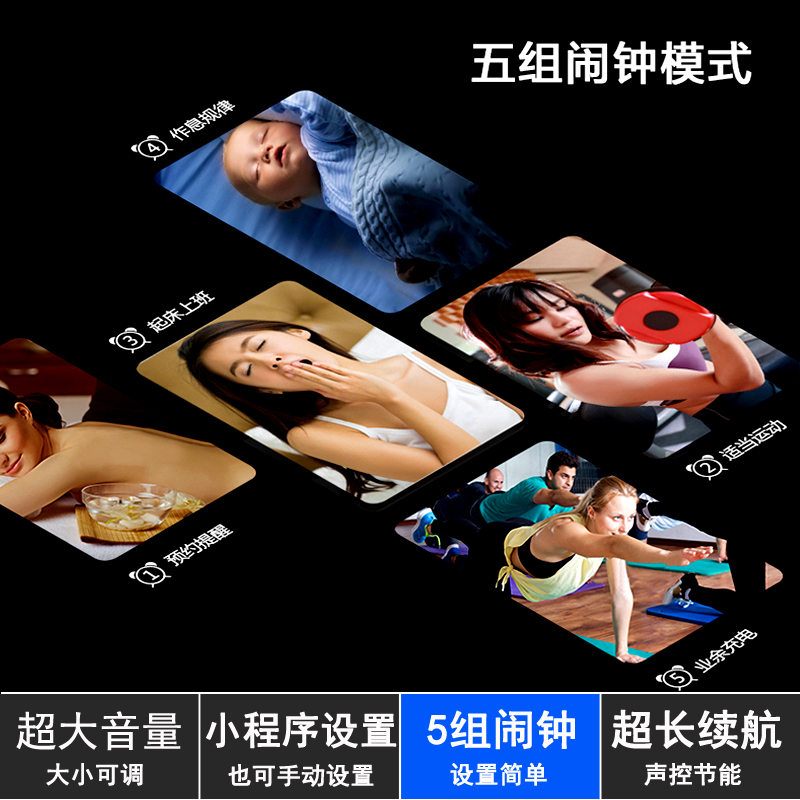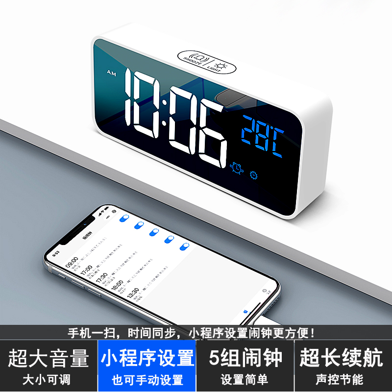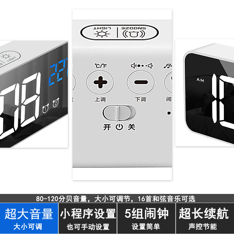 White-Normal button section can be set 2 alarm clocks black-Normal button section can be set 2 alarm clocks white-Upgrade small program setting can set up 5 alarm clocks
