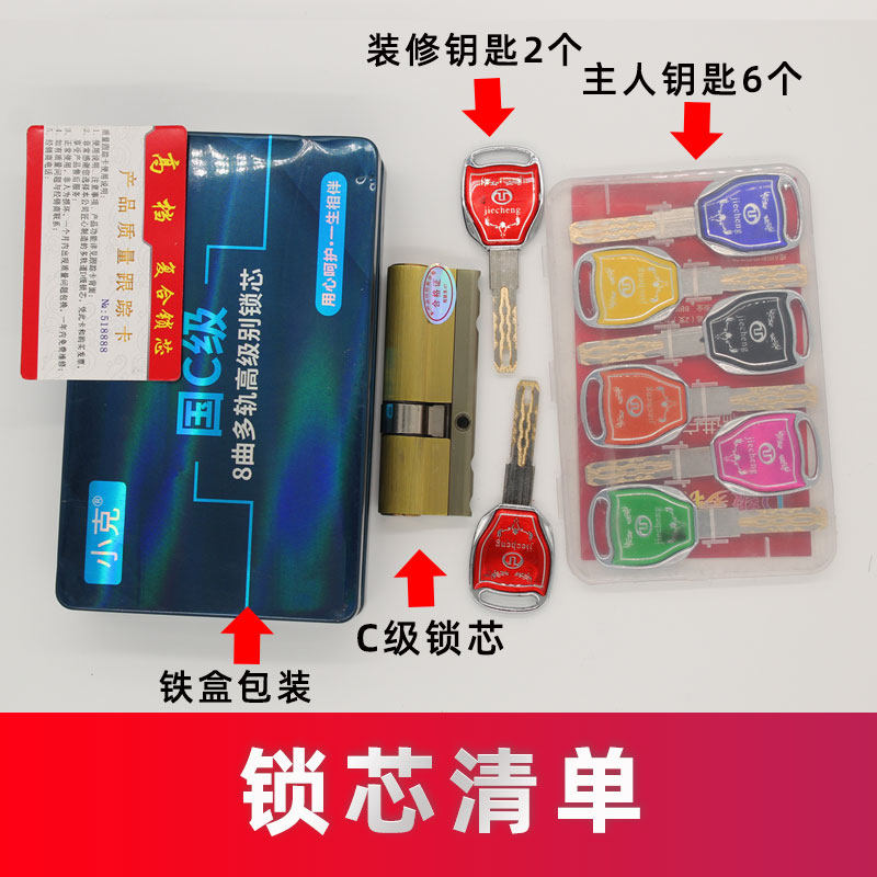 Security door C level lock core full copper seven color key universal door Multi-track composite blade idling lock core