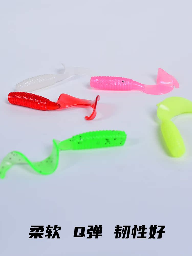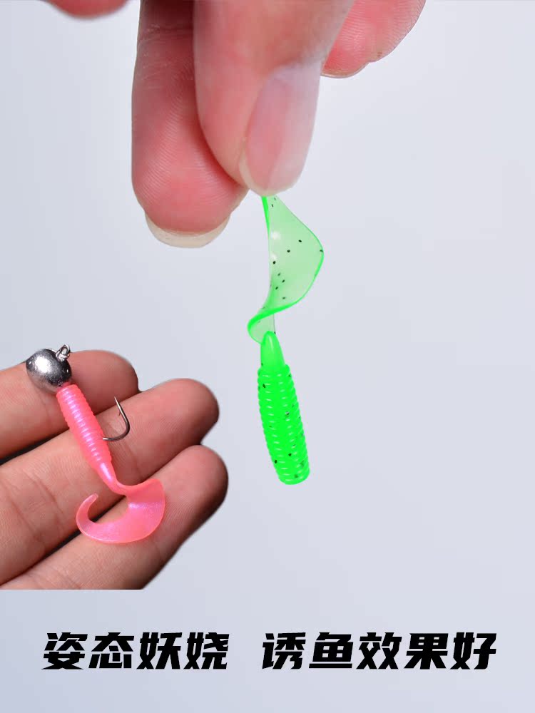 Lu Yagen fishing small soft bait ultra-small micro objects mini curly tail inverted fishing bait green strip mandarin fish black head sea bass soft maggot soft