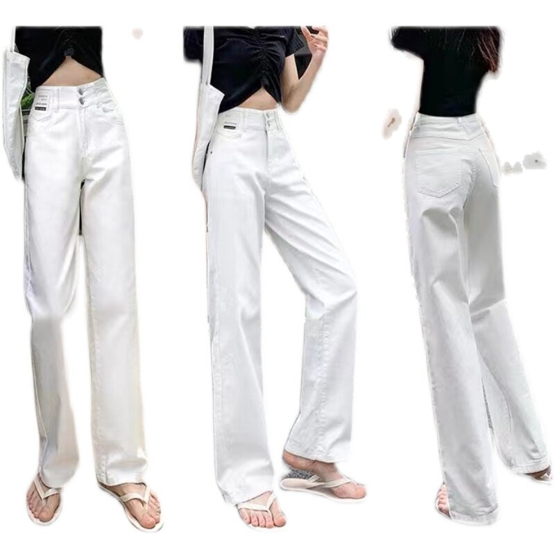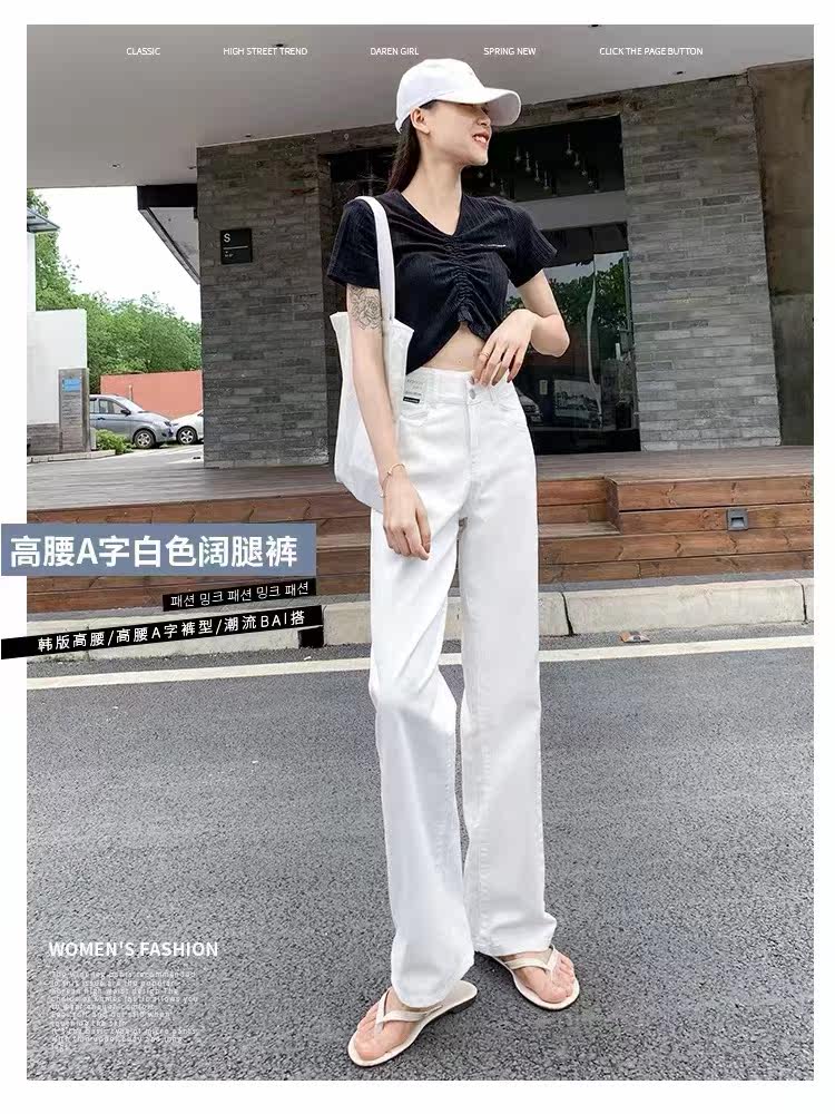 South Korea's white high - legged straight - legged jeans in spring and summer 2022 new loose and thin - tight pants