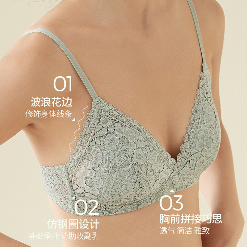 Small chest flat chest special bra triangle cup girl no steel ring French underwear big chest small bra summer thin section