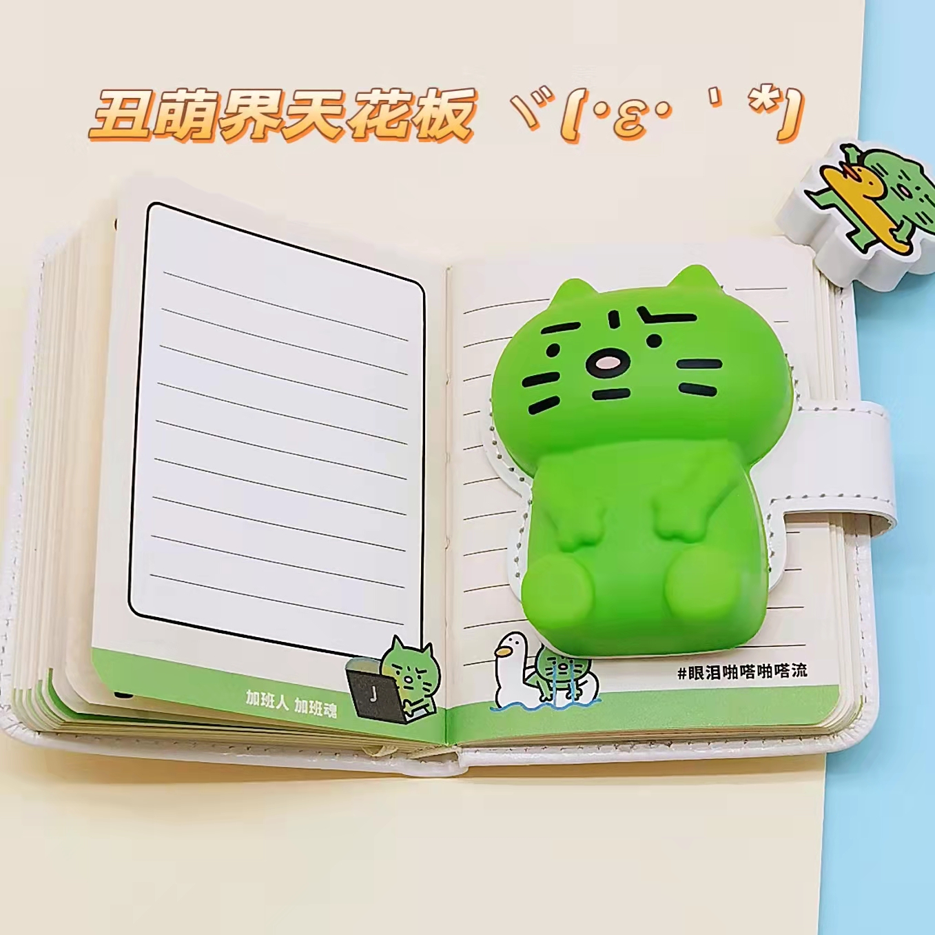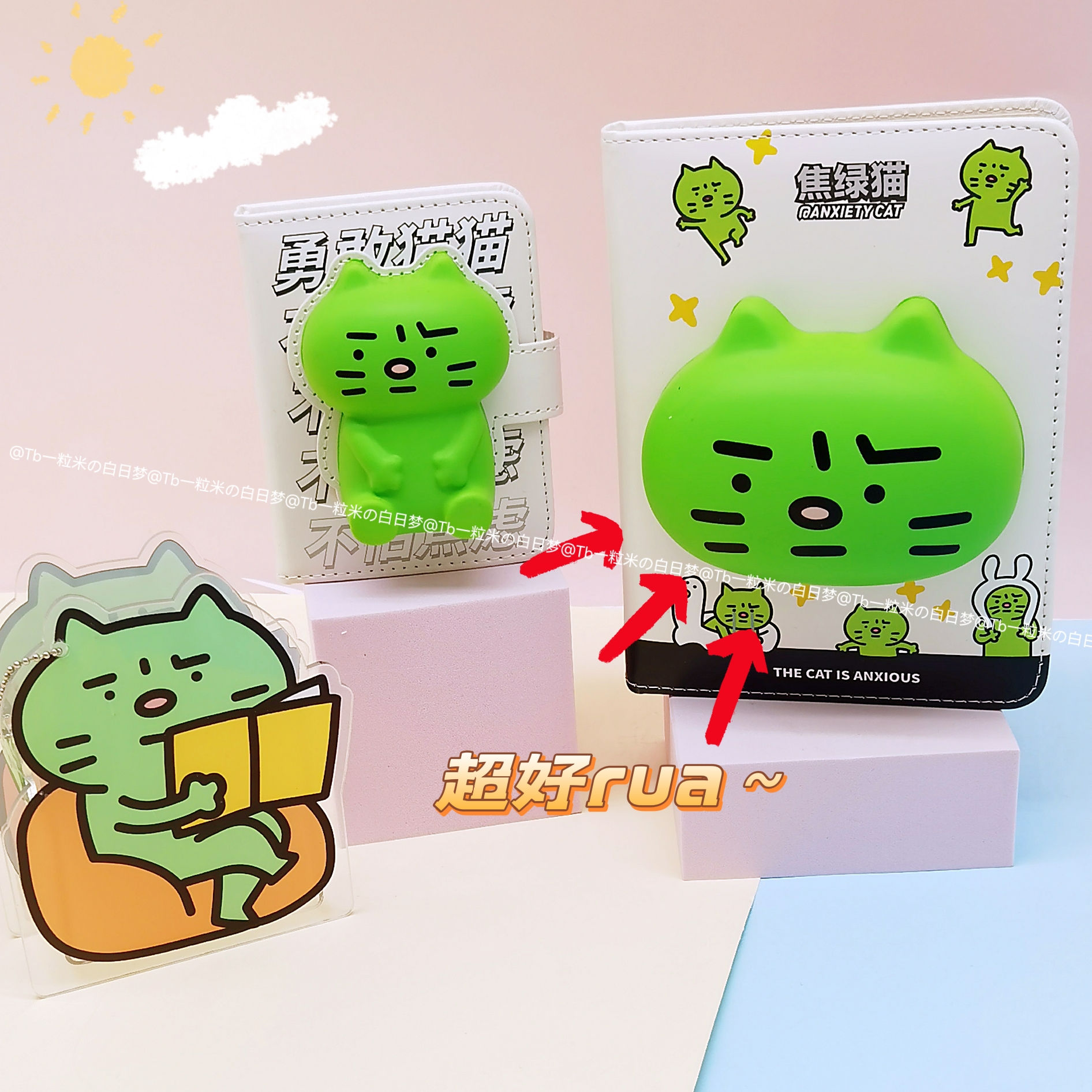 Charred Cat Charred Green Cat Decompression Decompression Colorful page Handbooks Bench Bench Knead Cute PU Notepad Boxed Presents