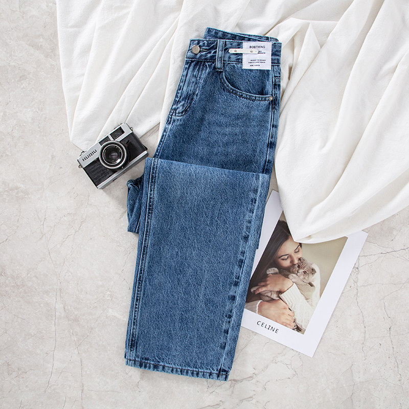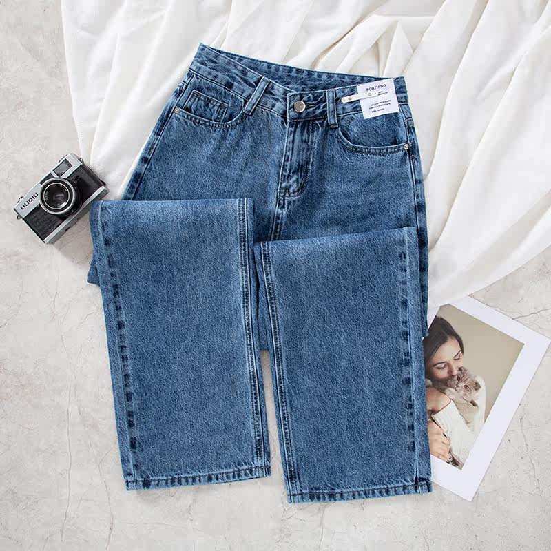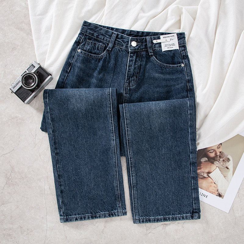 Wide leg jeans woman 90% high waist display slim fit 2022 spring fit 100 lap new loose straight drum towering trousers