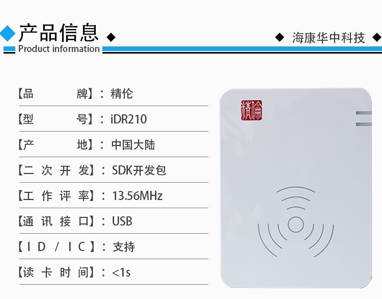 Jinglun idr210 identity reader department standard drive-free second- and third-generation card reader real-name registration document recognition device