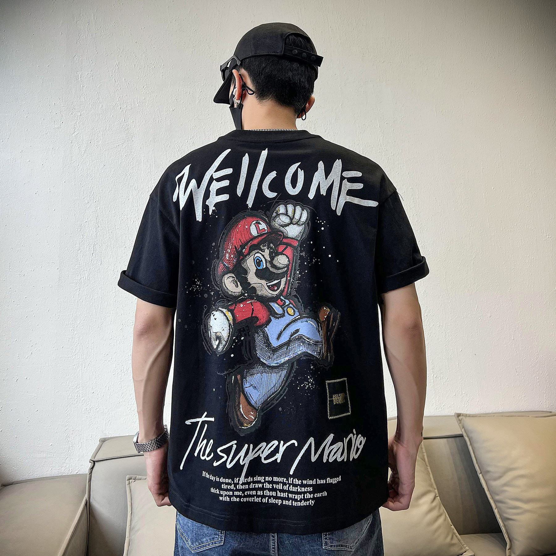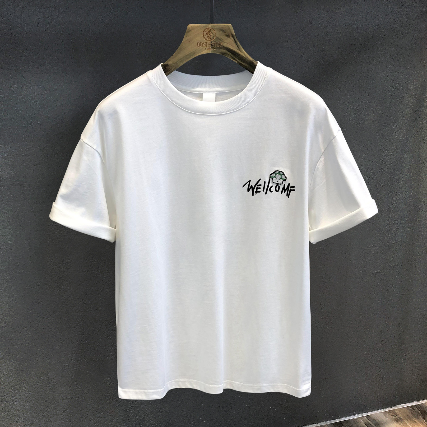Japan imported high-end fashion brand cotton heavy short-sleeved T-shirt men's clothing loose couple half-sleeve t-shirt top