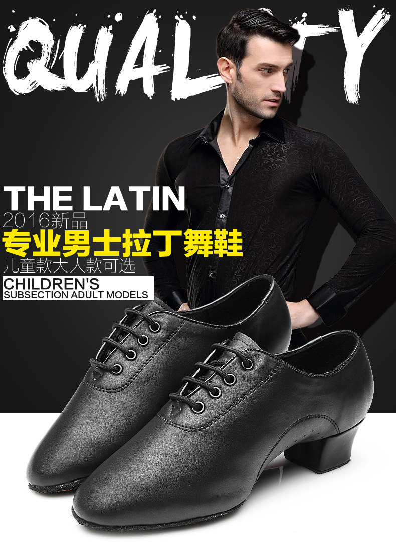 Three Sarah Din Dance Shoes Boy Black Imitation Leather Waltz Dance Shoes Toddler Soft-bottom Men Dance Shoes