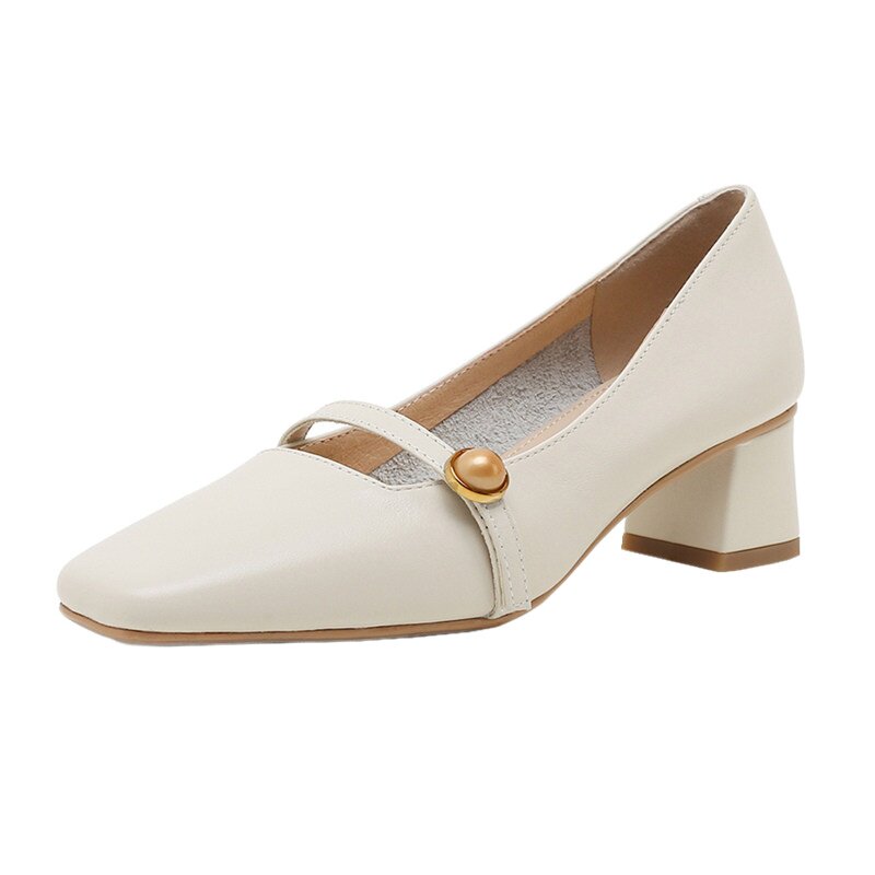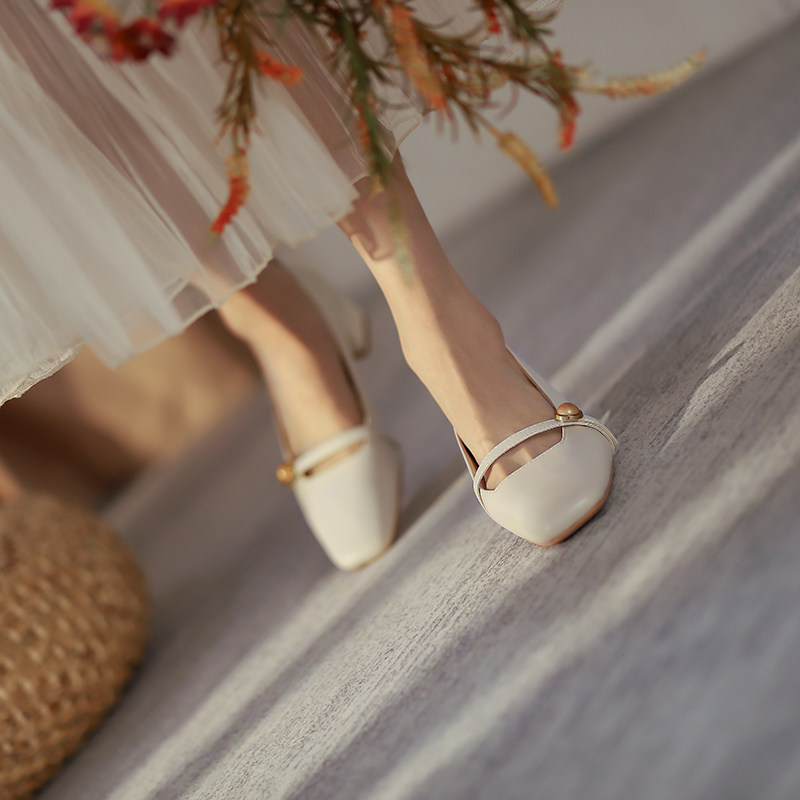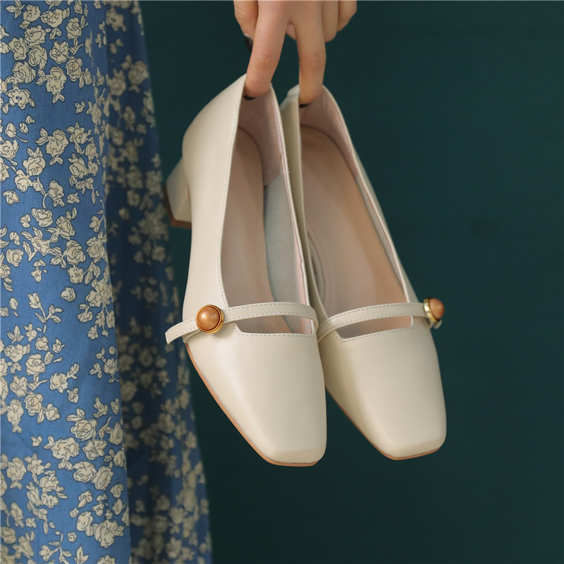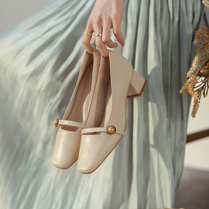 ann it is about not simple ~ 2022 thick heel with gentle square head retro shallow mouth soft high heel shoe 4 5cm