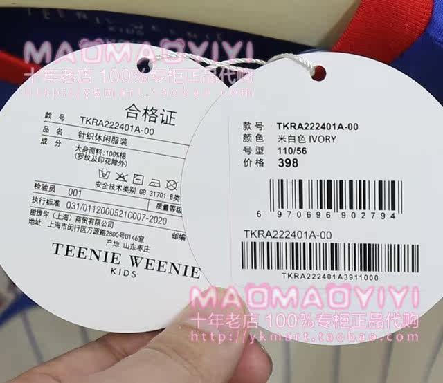 TeenieWeenie Domestic special cabinet 2022 Summer boy Leisure T-shirt TKRA222401A 398
