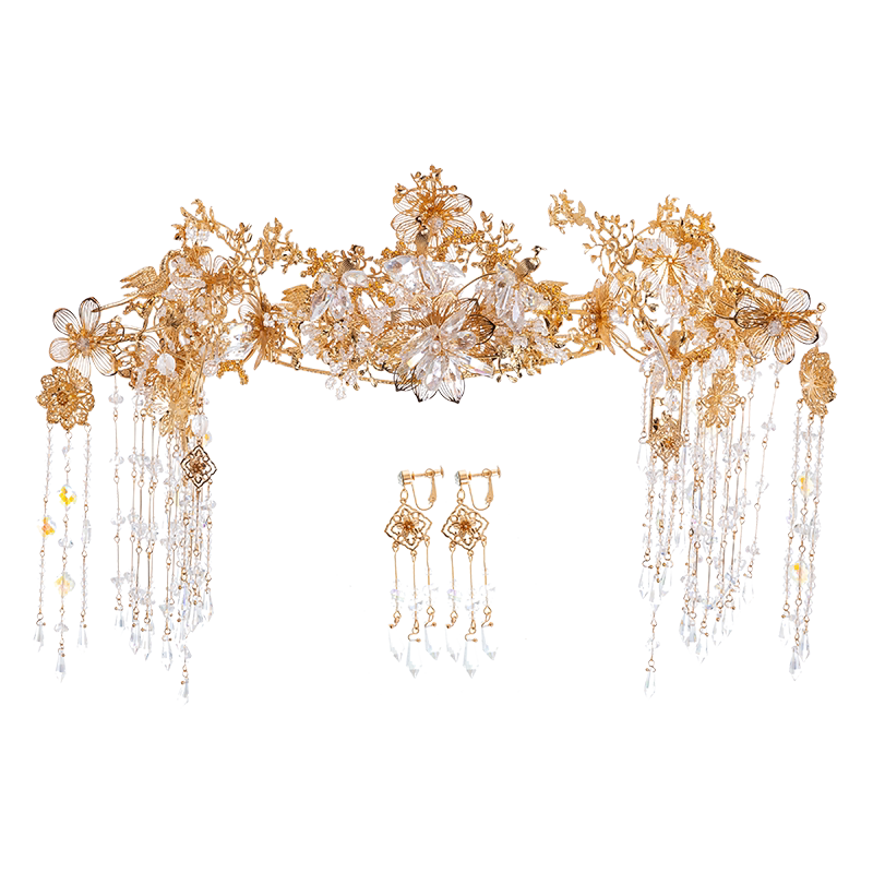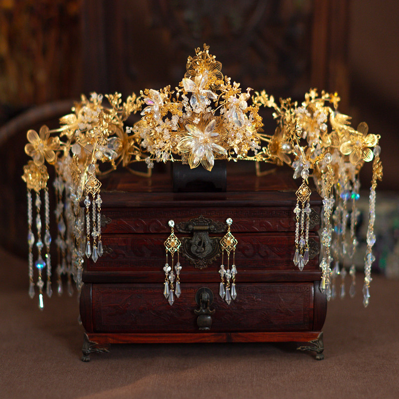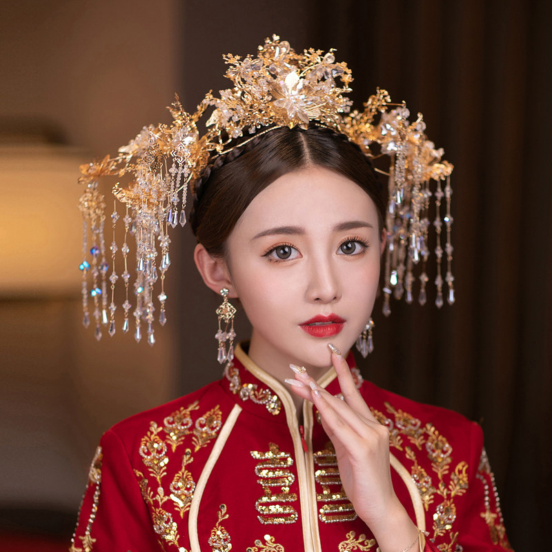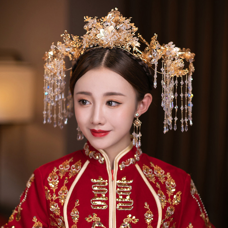 Bride Xiuhe headdress new golden Chinese tassel wedding toast clothing ancient phoenix crown ancient costume hair accessories Nuoqi