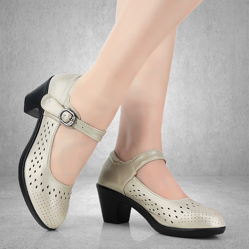 Genuine Leather Dancing Shoes Square Dance Shoes Interdance Shoes Interdance Water Soldiers Dance With High Heel Summer Coarse Heels Sandals Women Shoes
