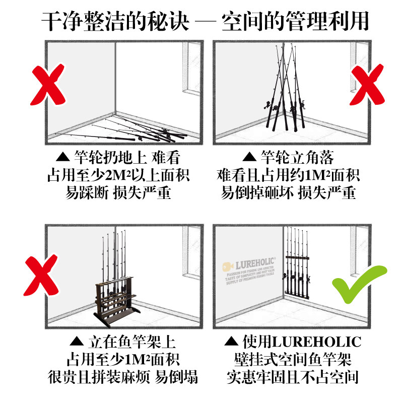 LUREHOLIC reinforced vertical road Apole containing shelf wall-mounted collection of fishing rod racks unsplit wheel bracket