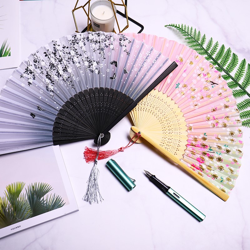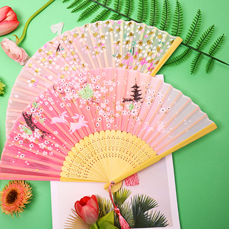 Fan folding ancient style Chinese female Hanclothing banggown dance children student folding small fan with the summer